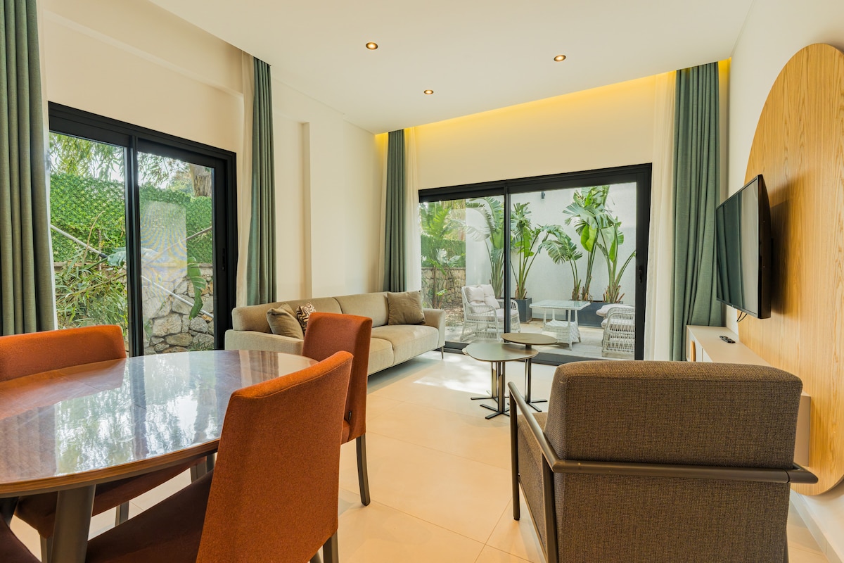 Luxury 5-Bedroom Seafront Villa with Private Beach, Pool & Stunning Sea View Welcome to this newly built, three-storey seafront villa offering a refined coastal lifestyle. Featuring 5 bedrooms, 2 living rooms, 2 kitchens, a private pool and garden, and direct access to a private beach. Guests enjoy access to the resort’s gym, spa, and massage rooms. The private beach has a bar & restaurant that operates from mid-May to late October.