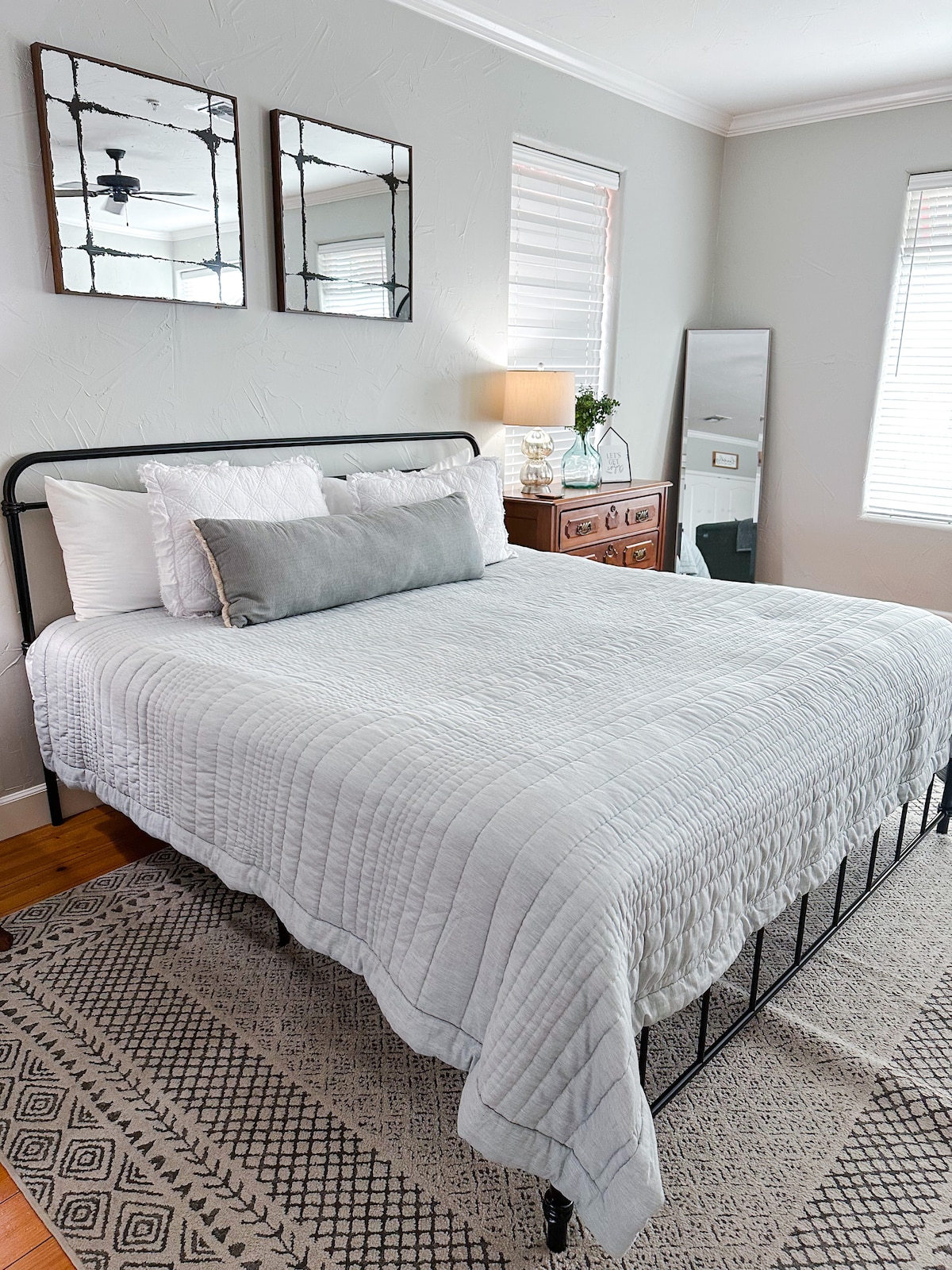 The Betizu is Situated upstairs, this charming private room has a perch where you can have a beer or a glass of wine from the local winery, relax and overlook the beautiful Courtyard. This modern suite has a king size bed with luxury linens and updated wood tile flooring. The swanky bathroom has a large walk in shower and deep soaking tub perfect for unwinding after a long day of shopping. Located in the heart of shopping, eating and wineries in downtown comfort Tx .