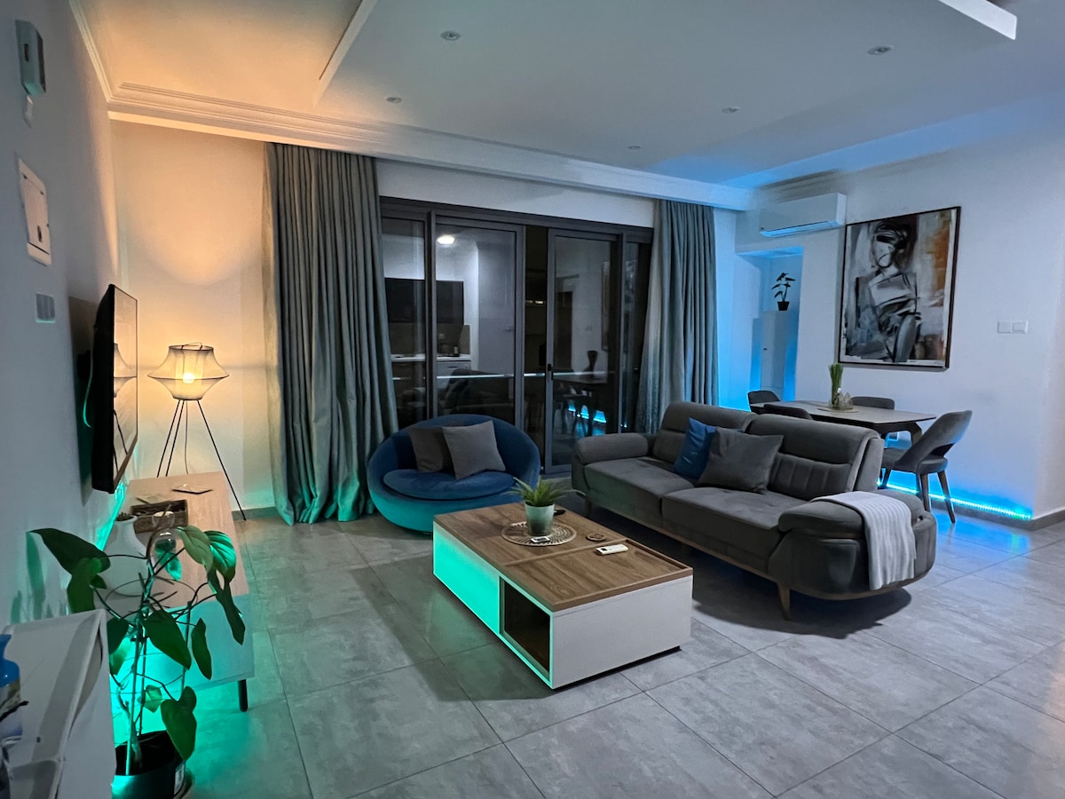 Welcome to your modern getaway in the heart of Kyrenia! 🌟 This stylish apartment features a sleek design with concrete ceilings 🏢. Both bedrooms 🛏️ offer comfy double beds. Enjoy cooking in the fully equipped kitchen 🍴 and stay connected with fast Wi-Fi 🌐. 🚶♂️ Just a short walk away, explore the lively main street 🛍️🍽️ and public transport 🚉. 🌊 Visit Kyrenia Harbour ⛵ (10 mins) or the Arkin Colony Hotel 🎰 (5 mins). 🕒 Check-in: From 14:00 ⏰ Check-out: By 11:00