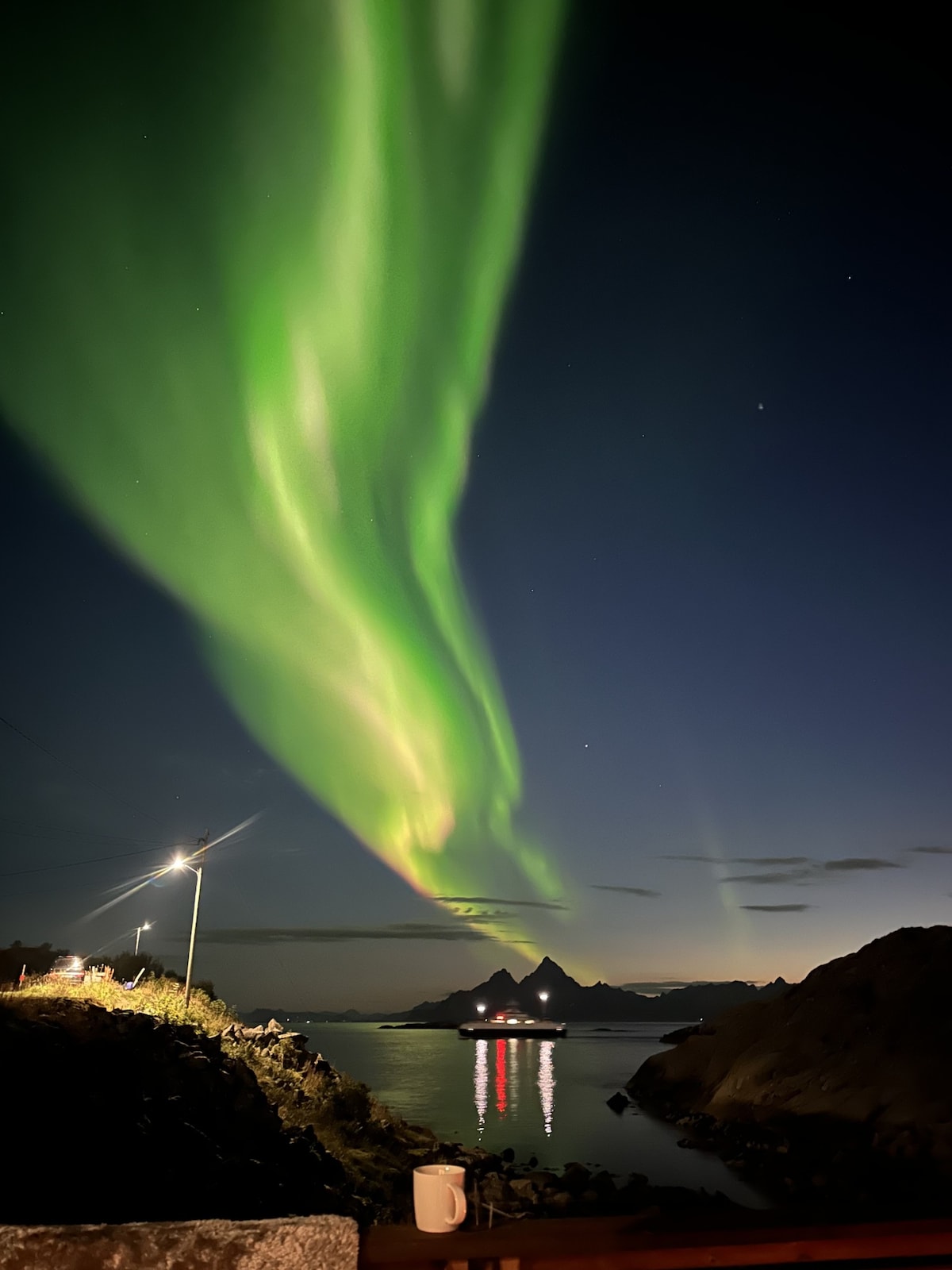 傍晚机场。在前往罗弗敦的路上看到北极光