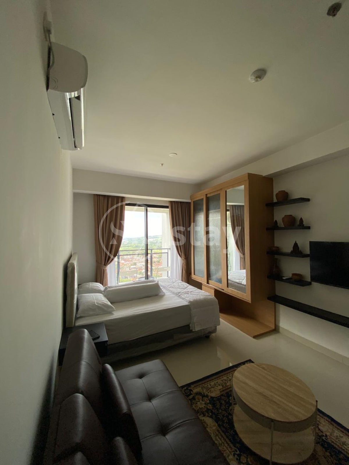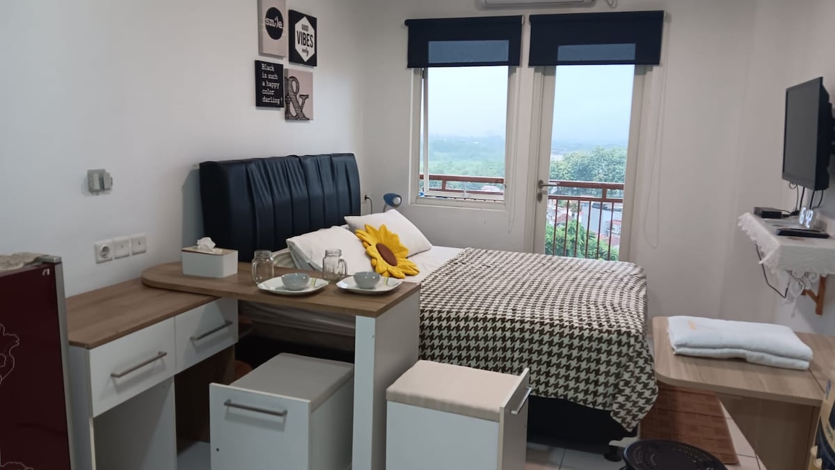 Relax at this peaceful place to stay. Studio apartment with balcony face to mountain. bath towel and amenities are provided. There are kids and infinity pool on 7th fl. Strategic location: 4km to Aeon Mall Sentul and IKEA 8KM to taman budaya 10Km to gunung pancar 2 min walk to Asiop training ground Facilities: Smart TV Wifi (limited quota) AC Working Desk Kitchen Set Water Heater Drinking Water Mini Fridge Confirm booking at least 24 hours before ariving