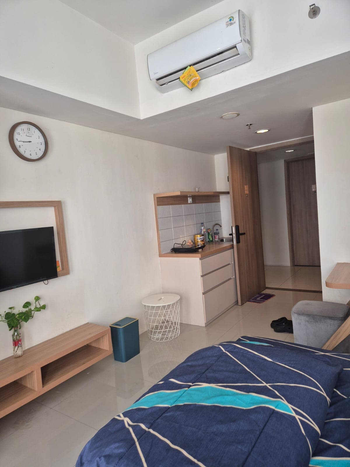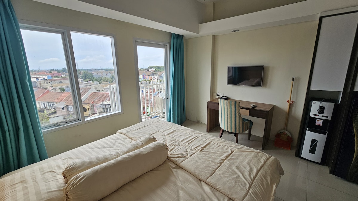 A brand new and simple but comfy studio apartment located in a 4 star hotel compound. Pool and Gym, hotel facilities are free to use. 24hrs Circle K is just across the street. Restaurants, Laundry and other shops are just a walking distance. Direct Bus Service to Jakarta's Soekarno Hatta's International Airport is just at the entrance of the Hotel with a budget friendly rate and comfortable seats.(Rp.55K/pax as Oct 1,2019) Overall staying at our place is strategic and full of basic facilities.