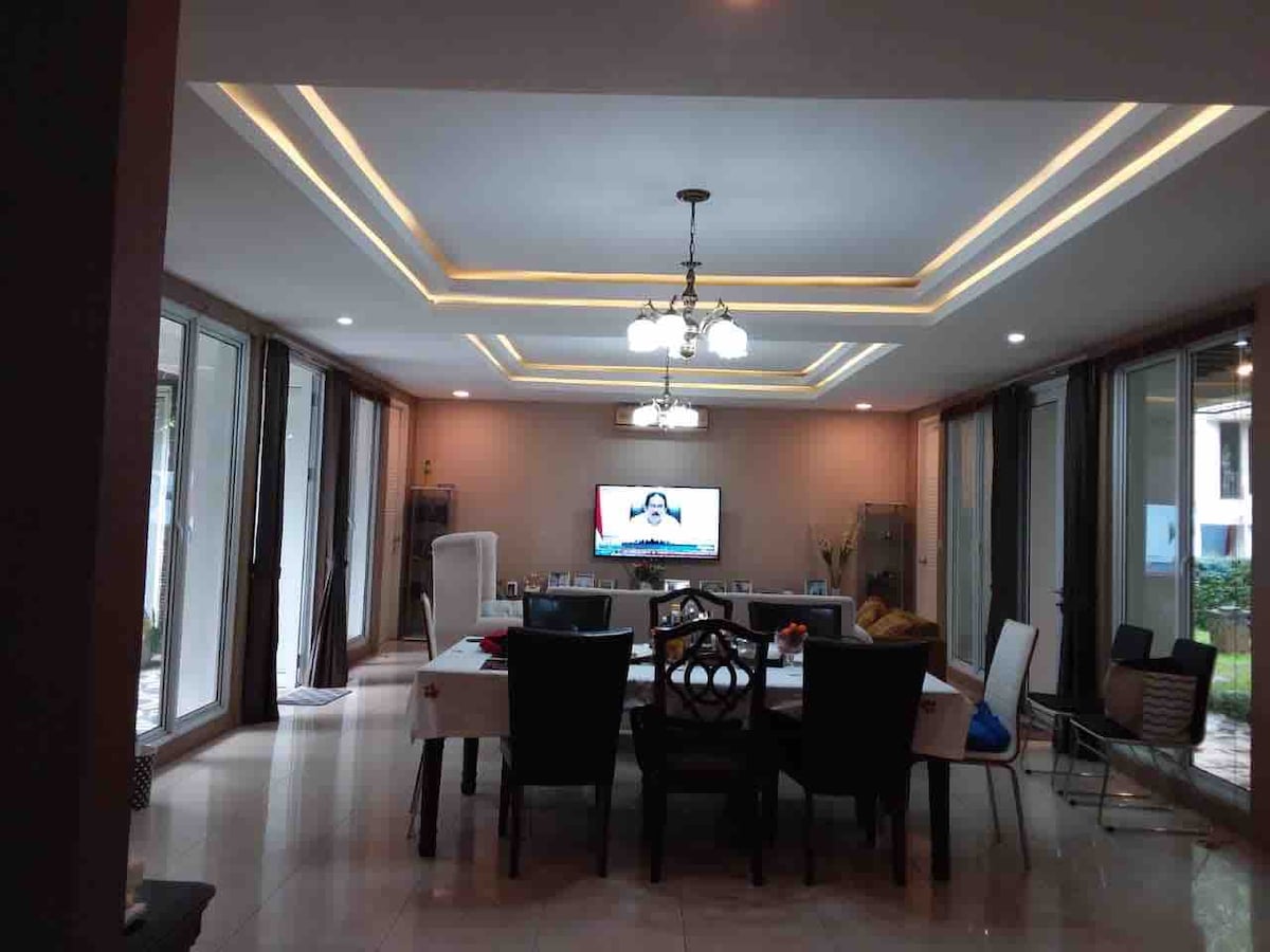 Bring the whole family to this great place with lots of room for fun. A spacious brand new villa at Rancamaya Golf Estate. The surrounding is green, quiet and peaceful but not far from Jakarta. Ideal for a short wk end getaway from Jakarta . 2 swimming pools are nearby the villa, at the Rancamaya hotel (@95k) and Istana Bunga cluster (@45k). The area has many jogging tracks to choose.