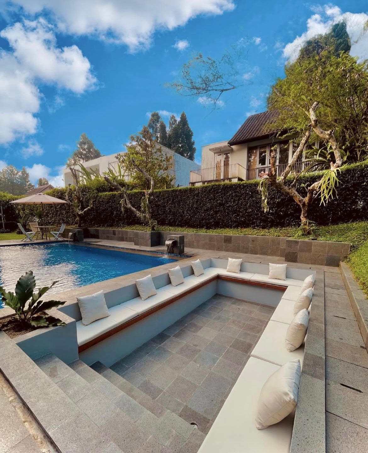 *Note: Always check on photos for promo Forget all the work and stress, explore the ordinary you. Located in Rancamaya Bogor, this 386 sqm (land) villa also has beautiful views such as Mt Salak, Lake, and various tourist attractions and culinary. Enjoy every moment of togetherness with your family or friends at this peaceful place to stay. Equipped with beautiful facilities such as a Bali concept swimming pool, American classic balcony, Outdoor and Indoor dining area, Photogenic garden, etc.