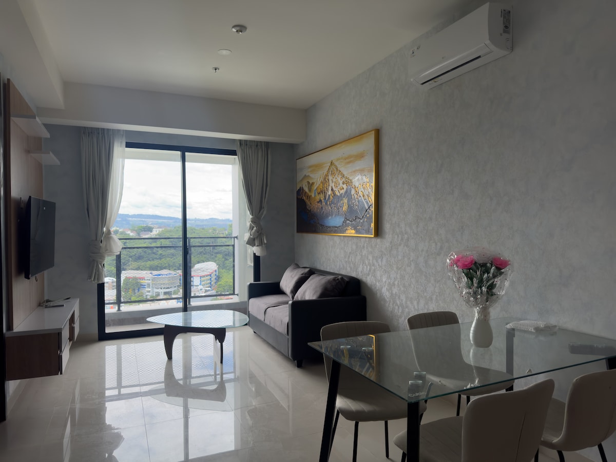 Find calm and convenience in our top-floor unit at Royal Sentul Park. Enjoy stunning views of Bukit Hambalang and Jagorawi toll from a bright, modern space. Perfect for couples, small families, or remote workers seeking a peaceful stay with fast Wi-Fi and a full kitchen. Nearby cafes and easy Jakarta access make it ideal for work or rest. Experience the unique blend of hills and highways—book your stay now!
