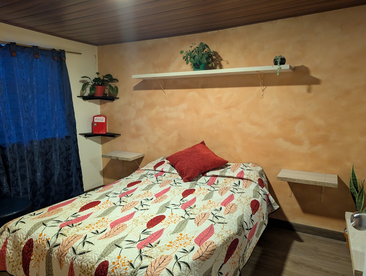 Apartaestudio amoblado independiente, cocina, cafetera, nevera, comedor, 1 habitación con cama doble, si se requiere se puede agregar una cama sencilla (igual maximo 2 personas), closet, zona lavandería lavadora de uso exclusivo, amplio y magnifico baño, zona de trabajo, wifi TV, escritorio, restaurante, Brunch y almuerzo, biblioteca con libros en alemán, ingles y español,Energía solar lumínica de Emergencia.ubicado en la zona de Usaquén Cedritos. No contamos con parqueadero para vehículo.