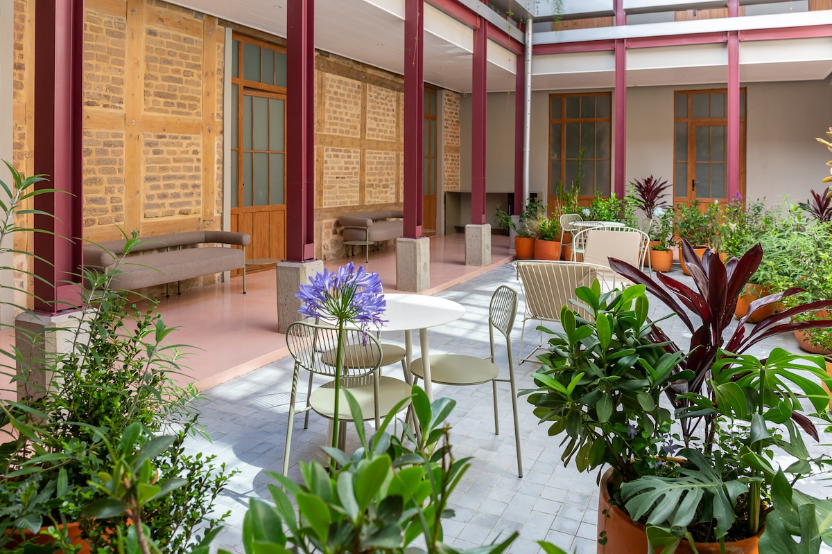 Loft acogedor y contemporáneo que hace parte de Casa Intaglio, un proyecto en el corazón del centro histórico de Bogotá. El apartamento cuenta con todas las comodidades para tener una estancia agradable mientras se visita todos los sitios de interés cercanos como el Chorro de Quevedo, la Galería Santa Fé, y la gran variedad de museos y restaurantes únicos y especiales que la Candelaria tiene para ofrecer. El proyecto cuenta con espectaculares zonas comunes y una terraza con vistas 360 del centro