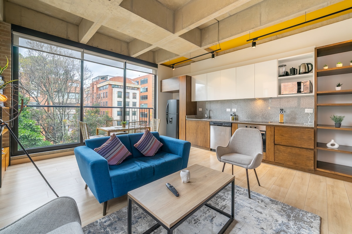 - Spacious & Stylish apartment in the heart of Chico, next to Virrey Park. - Big floor to ceiling windows, Amazing view of Bogotá and lots of natural light from a 7th level. - 2 Bedrooms, 3 Bathrooms and big living room. - 3 min walk to Virrey Park, 7 min walk to Park 93 and 10 min walk to Zona T. Very close to parks, public transport, restaurants, bars, groceries & drug stores. - The building has 24 hours security for easy check-in procedures. - Located in a cul de sac street, very quiet.
