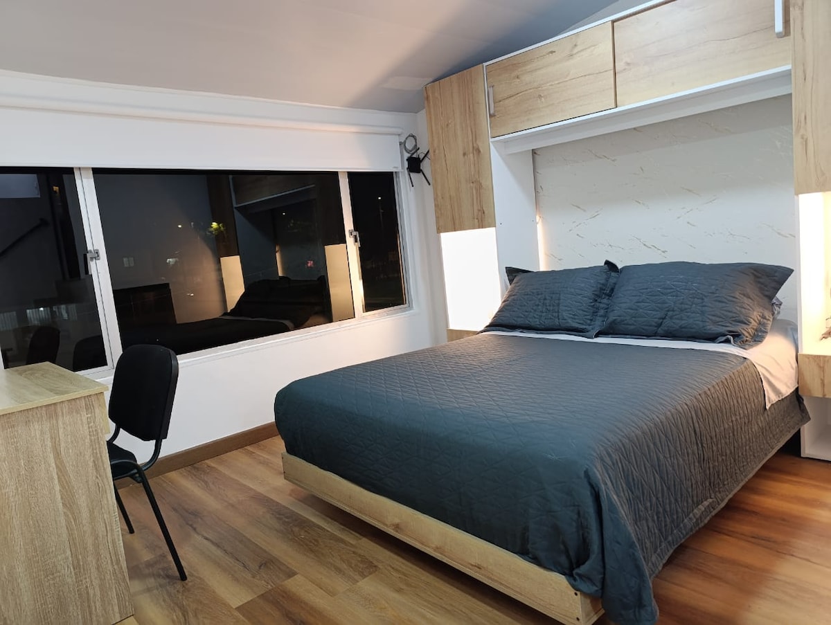 Apartasuite independiente cerca Aeropuerto El Dorado/Terminal salitre, a 10 min del aeropuerto y terminal, a 5 calles de la estación de transm. Normandia. En la zona: Calle 26, AV. Boyaca, AV. Cali . Centros comerciales (Nuestro Bogotá, Gran Estación) Cerca a la Embajada USA, CAS, Simón Bolívar, entre otros. Zona tranquila con bancos, farmacias, comercio y supermercados. Consta de una habitación, cama confortable, baño privado con ducha de agua caliente, toalla y jabon corporal. Tv smart, wifi