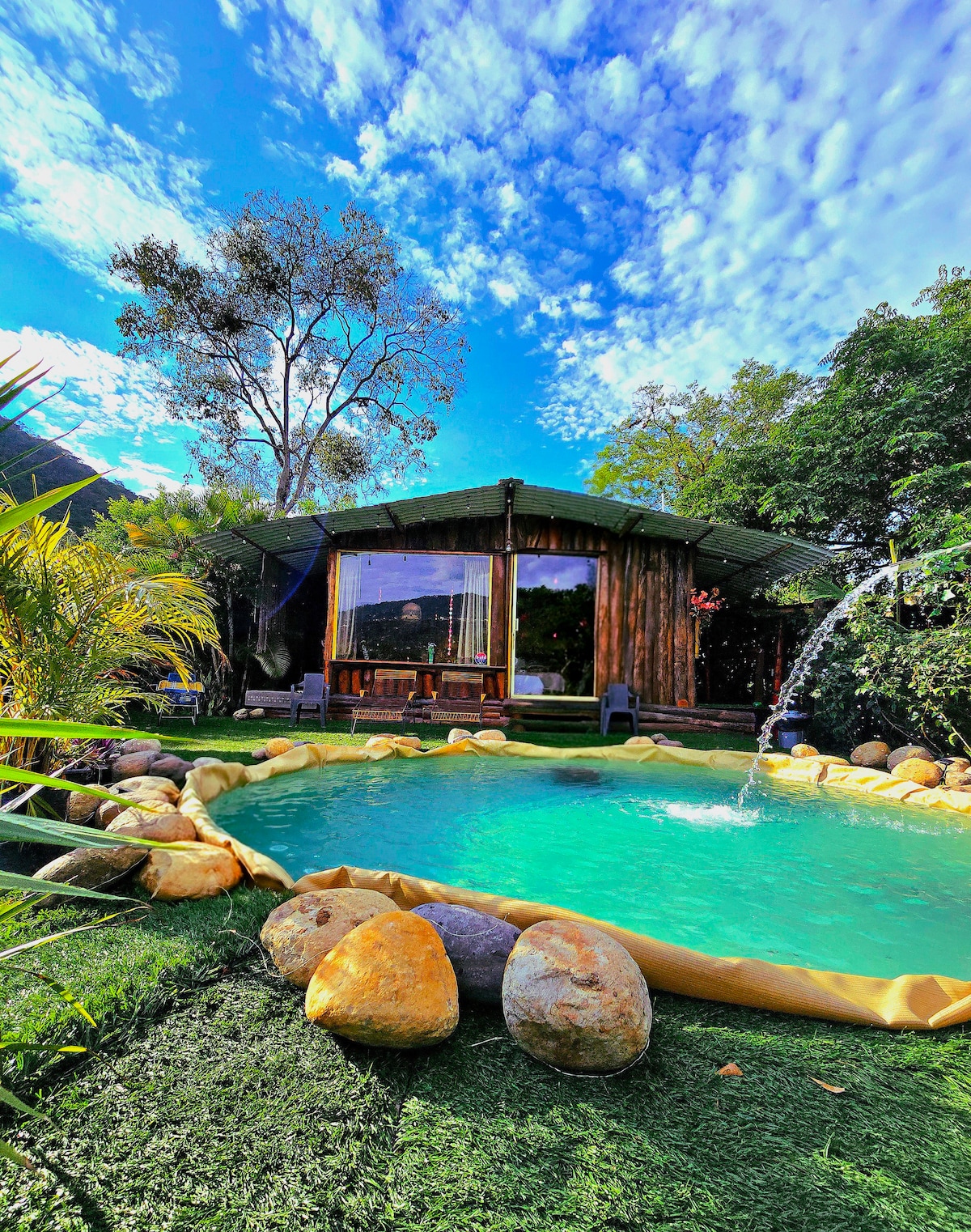 Relájate en esta escapada única y tranquila. Excepcionales Cabañas en medio de la naturaleza, con mucha tranquilidad y privacidad, planes en pareja, románticos, un espacio familiar. Espacio interior muy agradable, con todas las comodidades, baño de conexión con la naturaleza, con una ducha en la que podrás disfrutar de la azul del cielo. Podrás trabajar remotamente con nuestro Internet de alta velocidad, y disfrutas una bebida en la piscina. Espacio para dos parejas o cuatro camas separadas.