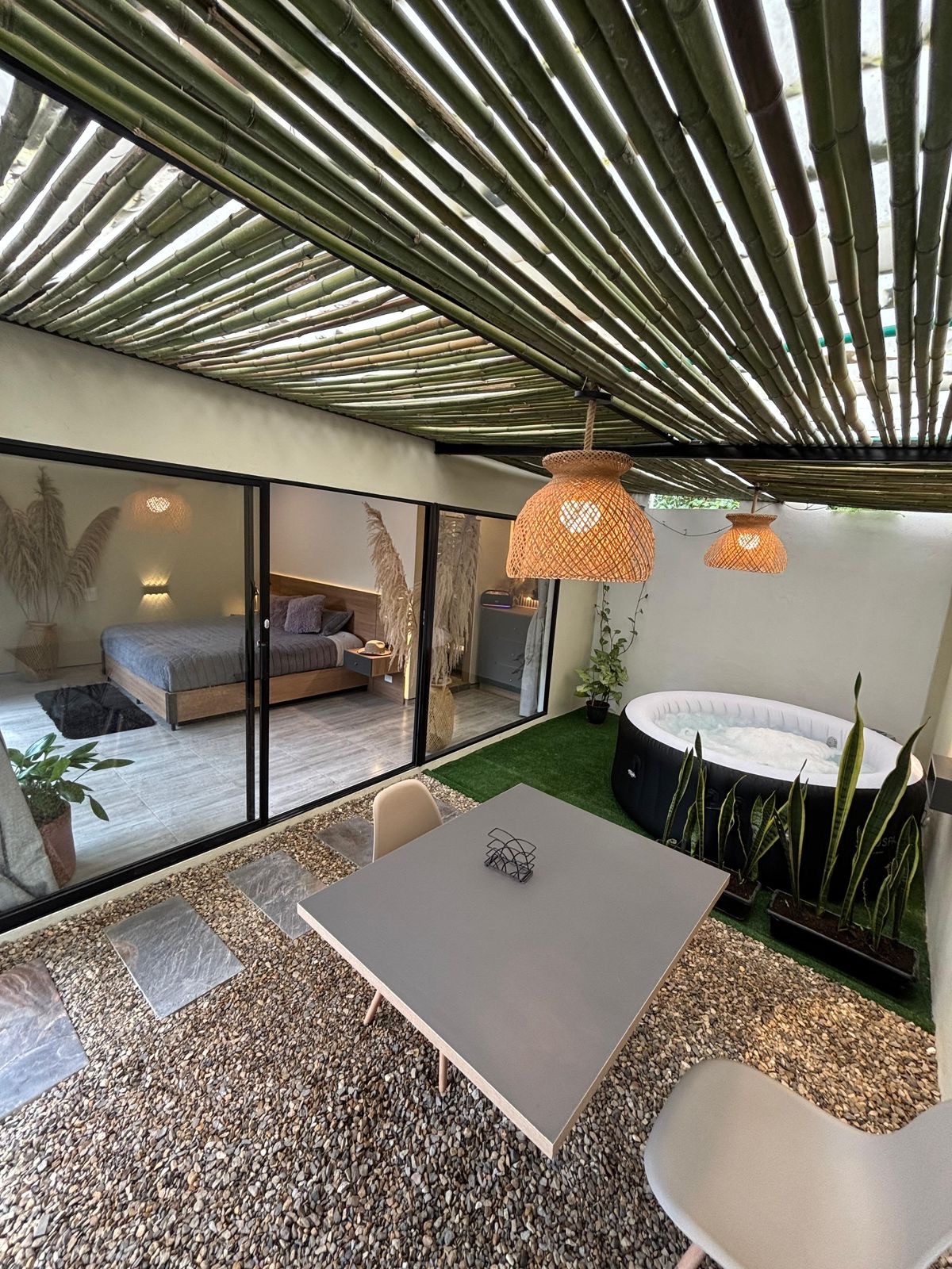 Descubre el refugio perfecto donde la tranquilidad y la naturaleza se encuentran, cada rincón está diseñado para ofrecer la paz y el confort que mereces relájate en nuestro acogedor espacio y renueva tu energía en un entorno sereno y rejuvenecedor reserva tu experiencia vive el descanso A tan solo una hora y cuarenta minutos de Bogotá, Espacio independiente en un segundo piso. Tenemos servicios de decoración para parejas, cumpleaños, aniversarios etc..