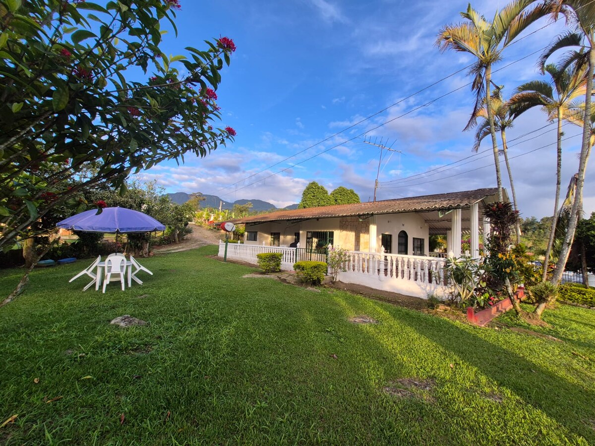 Relájate con toda la familia en este tranquilo lugar para quedarse y disfrutar de una linda casa, con piscina, amplia zona para asados, y hermosos paisajes. En la finca tenemos 3 perros, grande, mediano y pequeño, son amigables con las personas, pero deberían ser cuidadosos con su mascota, para que no haya alguna pelea, son animales y es imposible garantizar que no haya algún problema.