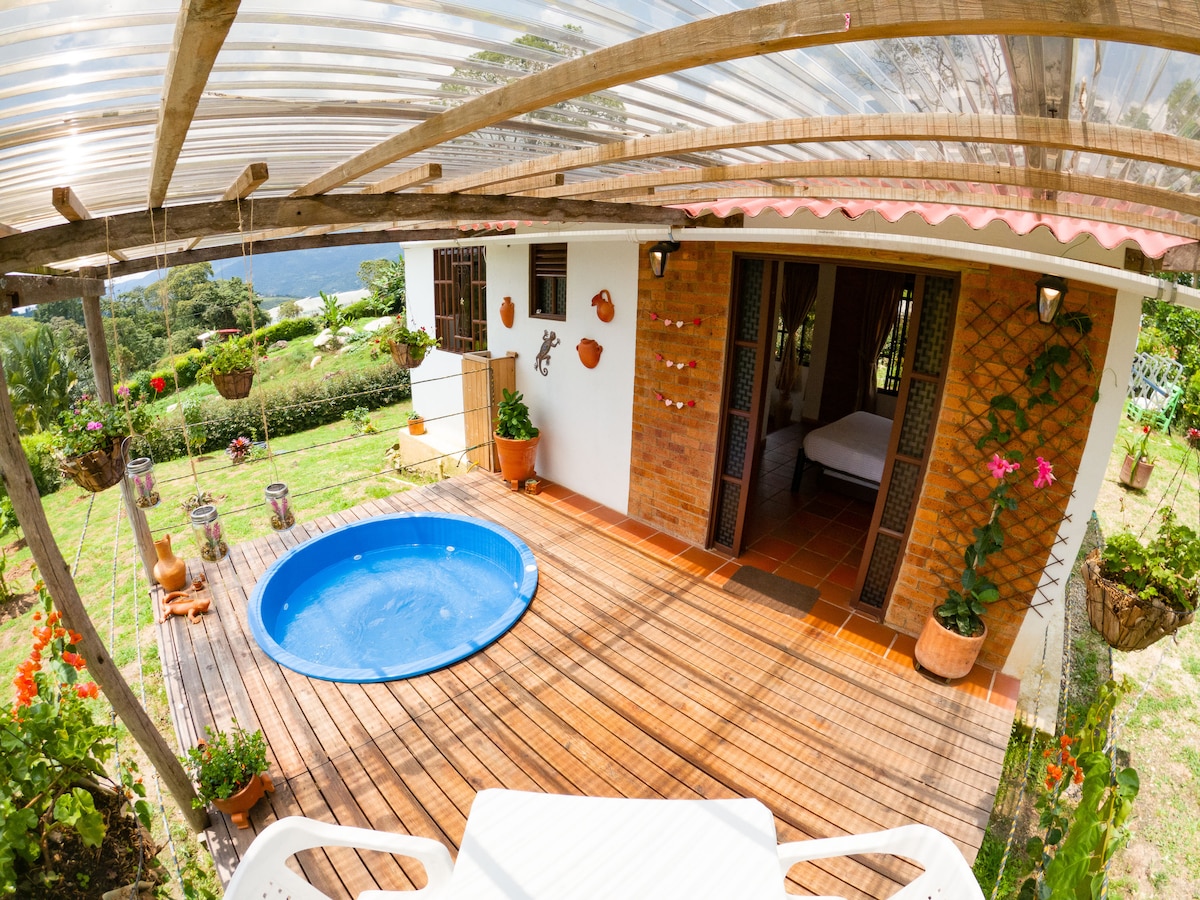 ANTES DE RESERVAR pregunta en el chat por las OFERTAS que tenemos para estadías entre semana. Espacio tranquilo para disfrutar en familia, lleno de naturaleza y comodidad. Ubicada en una zona con excelente clima (24 c°) a tan solo 60 km de Bogotá y a 3 km del centro de Fusagasugá. En tu estadía puedes disfrutar de un espacio con jacuzzi exclusivo para los huéspedes, caminatas ecológicas, variedad de animales y una vista espectacular donde se puede apreciar las montañas de Cundinamarca.