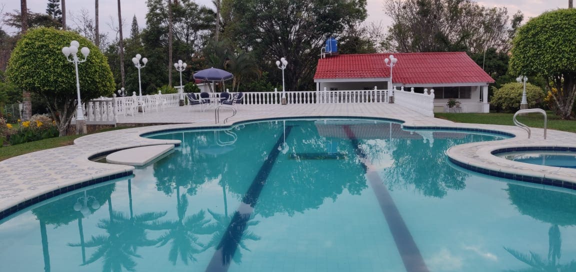 te brindamos una espectacular casa quinta totalmente equipada. cuenta con 6 habitaciones cada una con su baño privado, tiene 2 salas de estar un kiosco de entretenimiento con varios juegos y kiosco BBQ con espacio para sopas, parrilla para asados y barril , la piscina es propia y totalmente privada. en servicios ofrecemos WI-FI (10 megas), DIRECTV, y cocina con totos sus implementos para cocinar. la casa cuenta con un ambiente totalmente rodeado de naturaleza con caminatas ecologicas