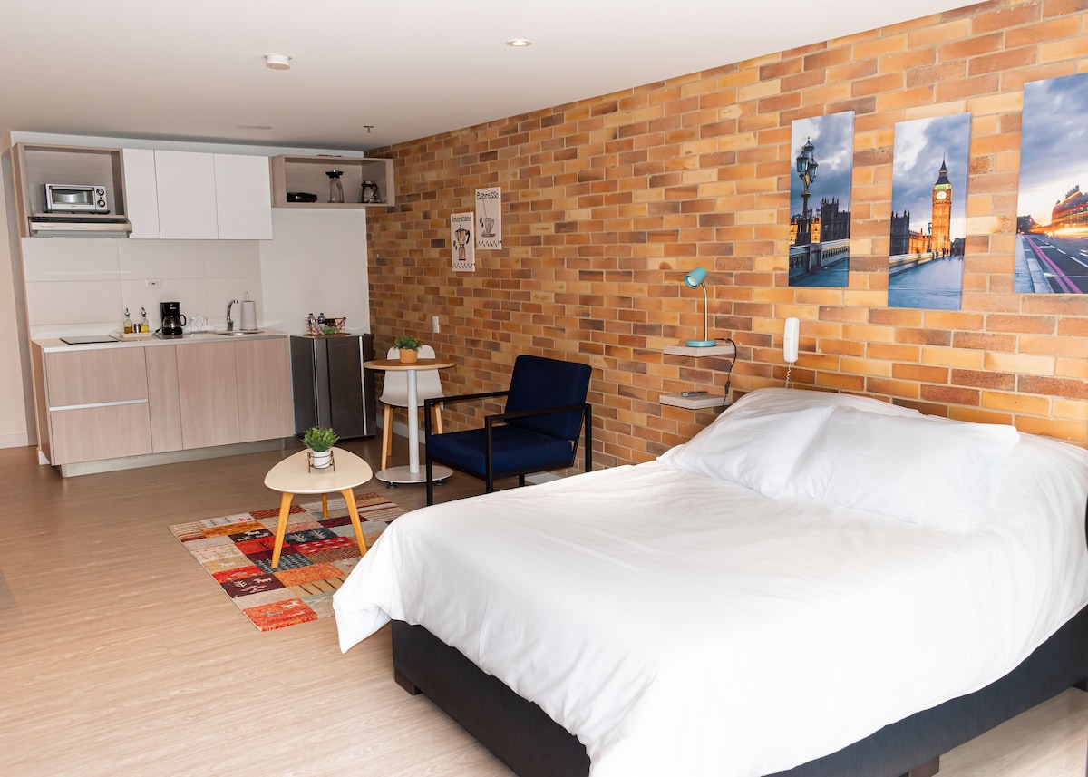 Relax in this modern and comfortable loft located in the charming Usaquén, one of the most vibrant areas of Bogotá. Within a few minutes walk, you will find a variety of gourmet restaurants, cafes, and unique boutiques. The room features a queen bed, private bathroom, Wi-Fi, and a workspace ideal for business travelers. Perfect for couples or solo travelers who want to explore authentic Bogotá life in a safe and sophisticated environment. Uroom is exquisite in the details!