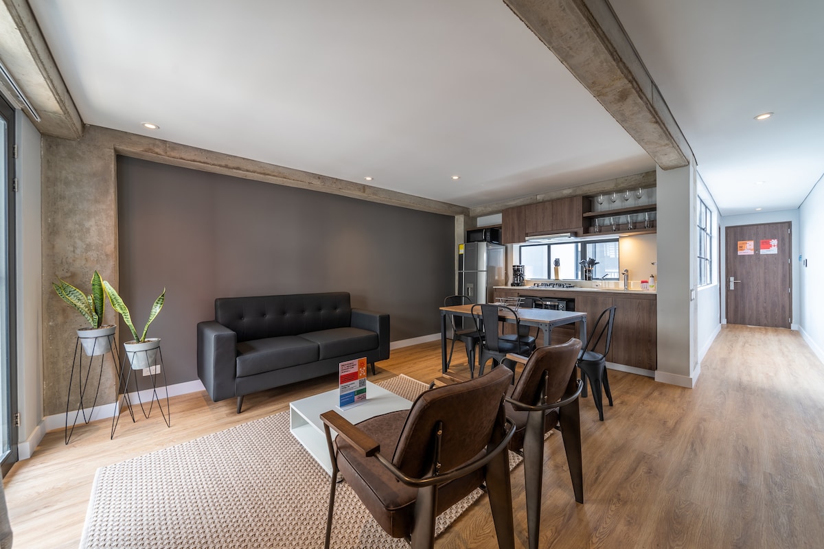 Relax in this modern and comfortable loft located in the charming Usaquén, one of the most vibrant areas of Bogotá. Within a few minutes walk, you will find a variety of gourmet restaurants, cafes, and unique boutiques. The room features a queen bed, private bathroom, Wi-Fi, and a workspace ideal for business travelers. Perfect for couples or solo travelers who want to explore authentic Bogotá life in a safe and sophisticated environment. Uroom is exquisite in the details!