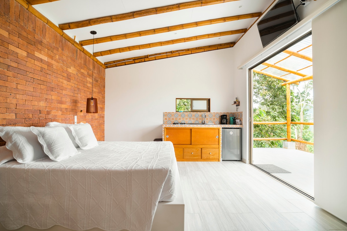 Escapa al paraíso en nuestra cabaña privada tipo Glamping rodeada de bosques y montañas para un descanso total. Disfruta de Jacuzzi, BBQ, hamaca, cama Queen y balcón. Acceso exclusivo al lago y deck. Incluye servicio de alimentación a la cabaña de 7:30am a 9:00pm. Ambiente de descanso y total privacidad con vistas panorámicas. Disfruta de un diseño minimalista y abierto a la naturaleza para una estancia inolvidable en pareja.