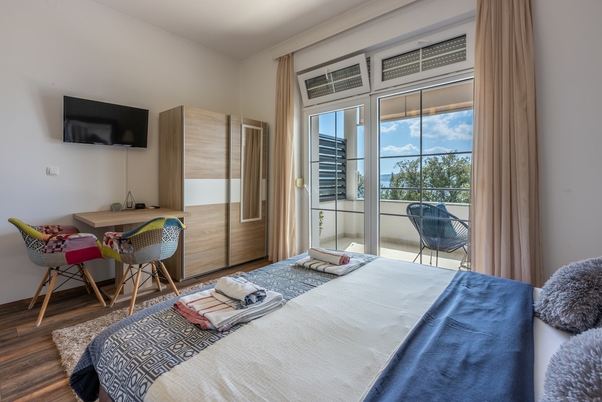 Furbished as a cosy nest (50m2) to enjoy the most beautiful VIEW trough the panoramic window make you feel softly situated on a white cloud. Located in the picturesque little town of Volosko, 10 steps from the sea, surrounded by little coffees and restaurants well known for their fish specialties. The seaside walk is 12 km long scattered sparks with pebbles and sea-leveled rocks, beaches with possibility to rent paddle boards, water ski and canoe.