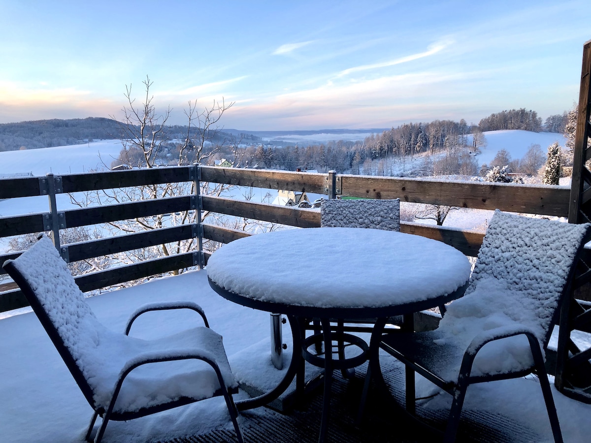 Waldhaus Sonnenuntergang mit Fernblick und Sauna