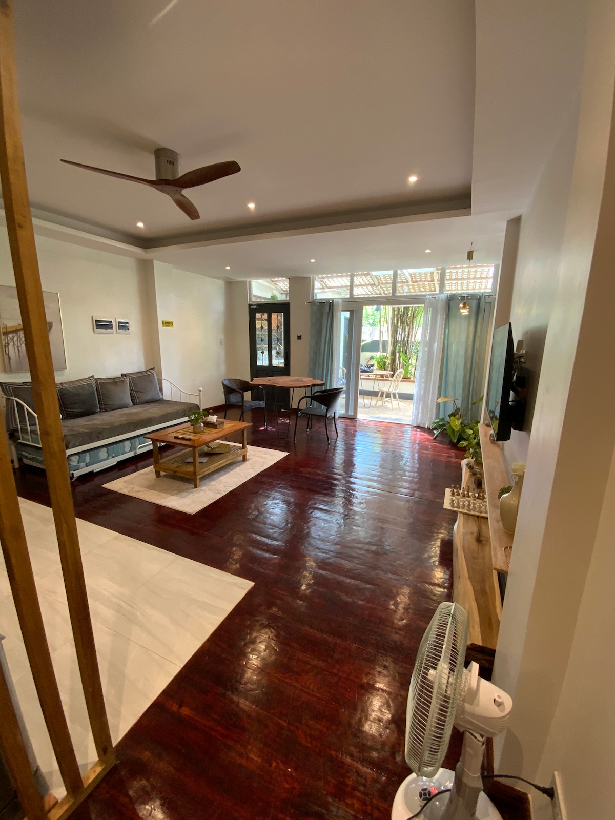 Welcome to Banyan Villa, a tranquil retreat strategically located just a 5-minute drive from the center and a short walk to Danao Beach, with restaurants and stores in the vicinity. Tailored for private getaways for couples or gatherings with family and friends, our villa features a private pool shaded by an ancient banyan tree, an open living area, a full kitchen, and the latest modern amenities. Surrounded by rare plants, it creates the perfect blend of comfort and natural serenity.