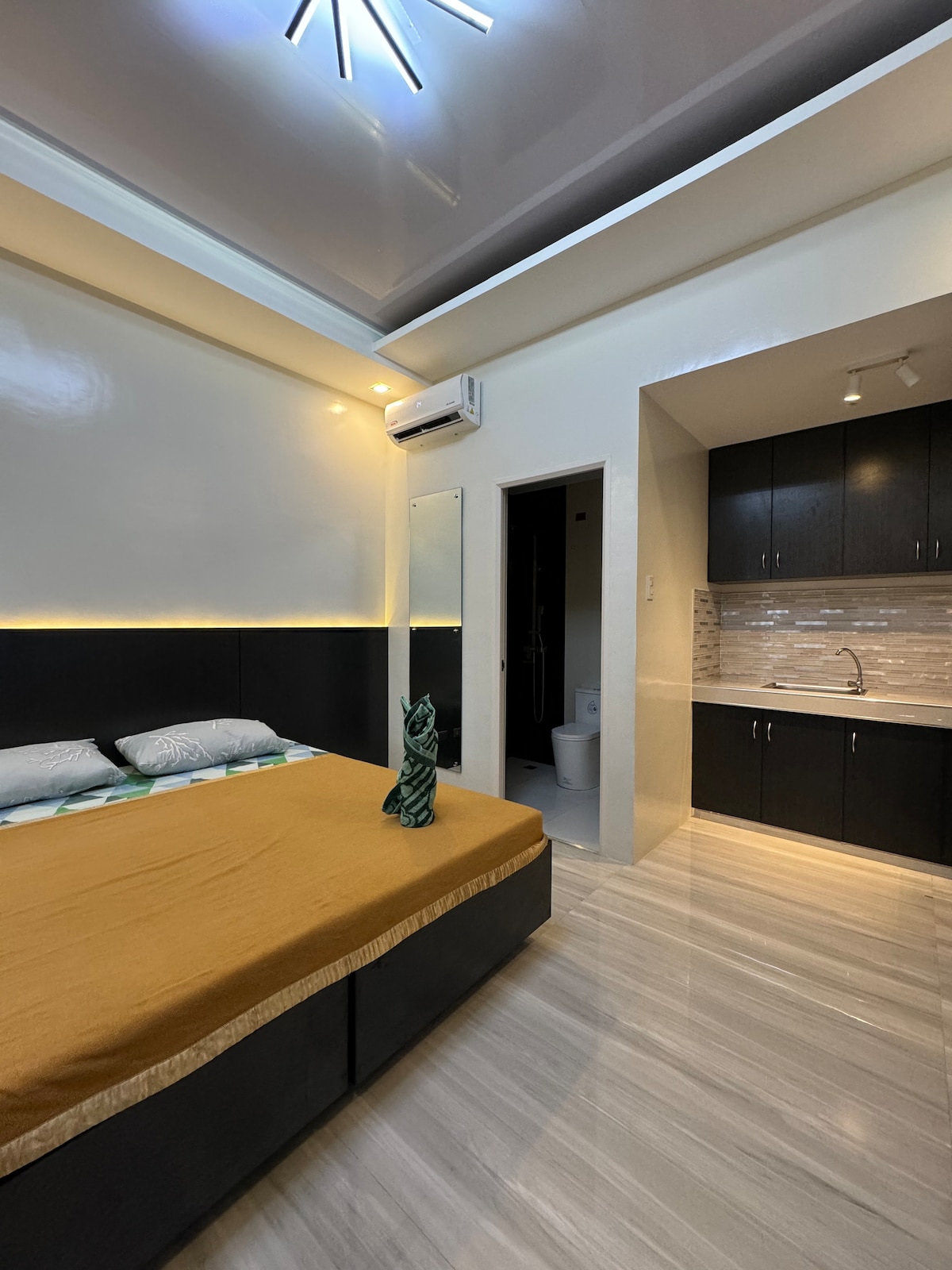 This modern studio room offers a cozy and functional space in Tagbilaran City, perfect for work & travel. It features a comfortable bed with premium bedding, ambient lighting, and a sleek ceiling design that enhances the room’s aesthetic. The room has an en-suite bathroom, a kitchenette for light cooking, and an air-conditioning unit to keep you cool. Ideal for both short and long stays, whether you’re here for business or leisure, this space offers the perfect blend of comfort and convenience.