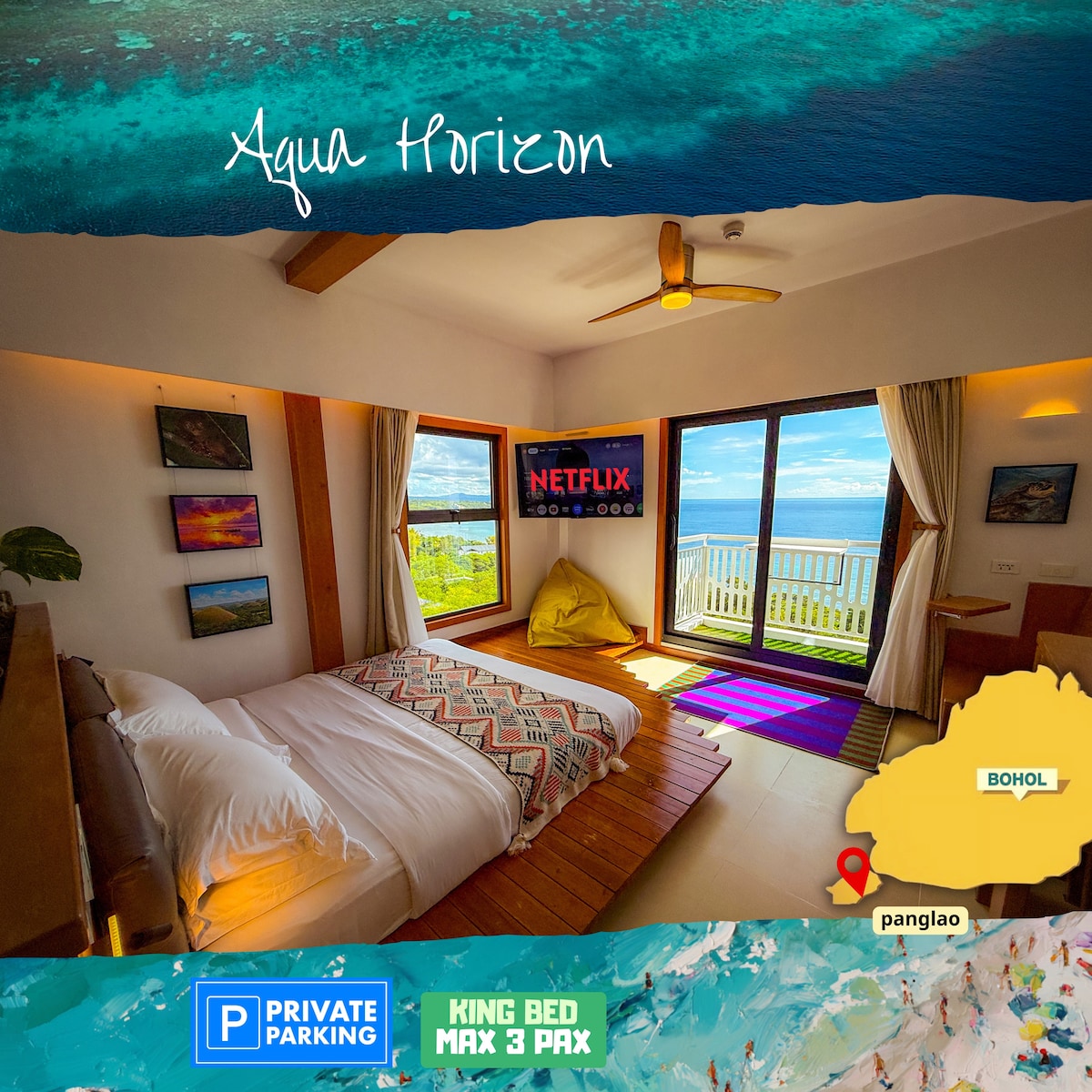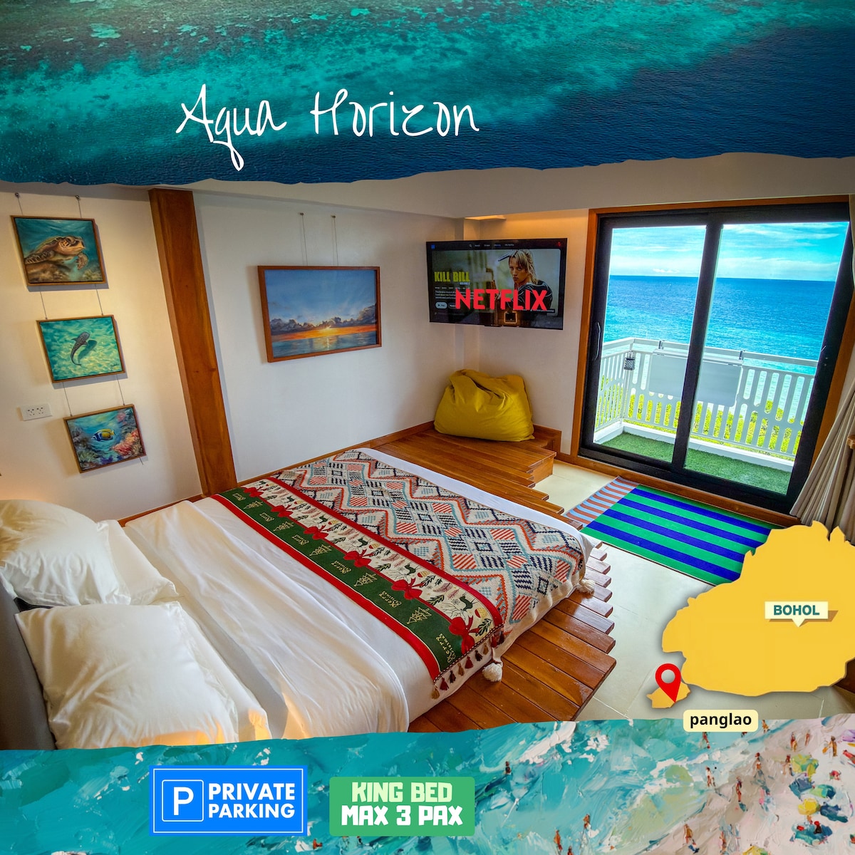 Aqua Horizon Panglao 21海景艺术公寓,配有特大号床