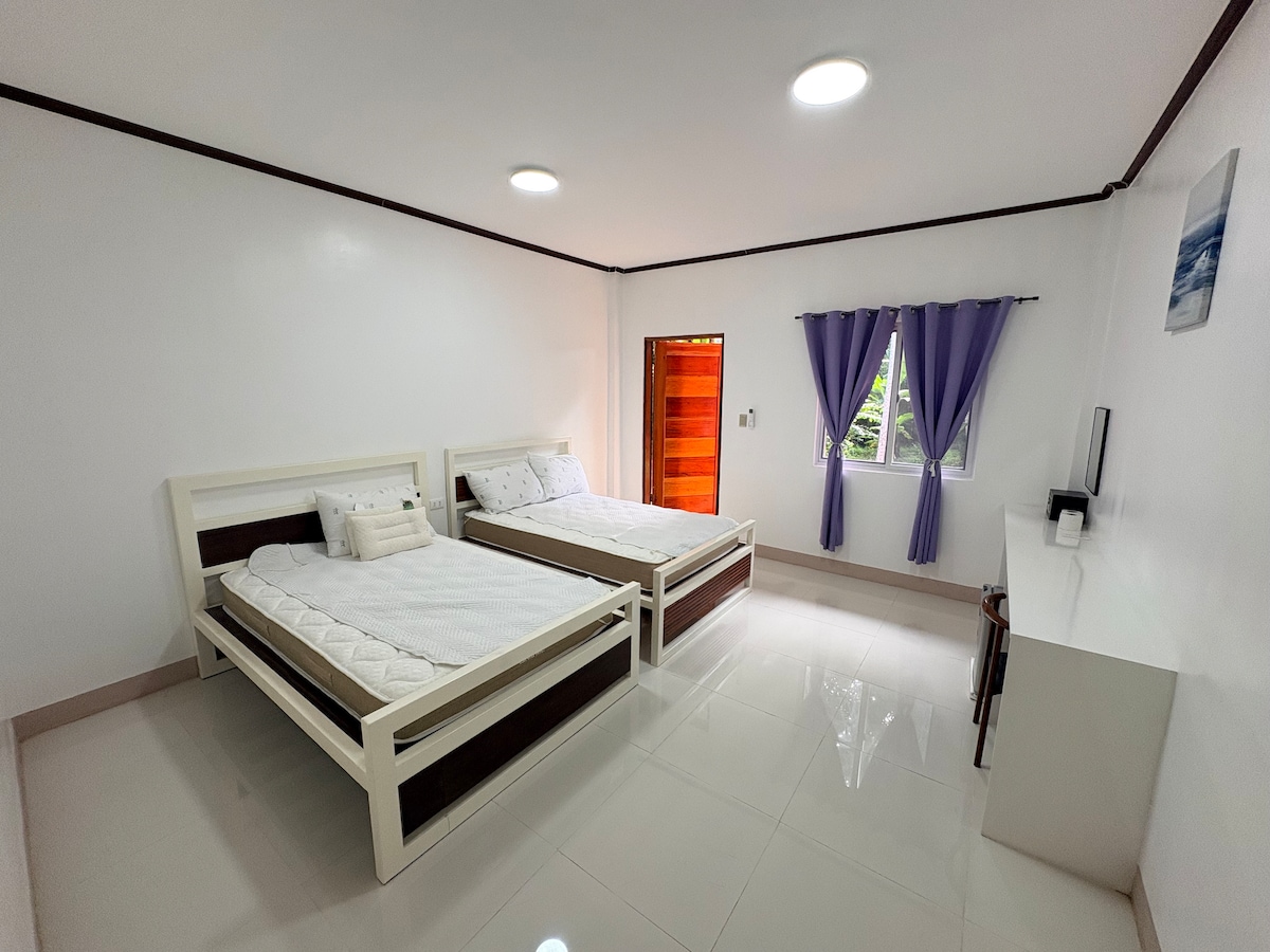 Bright and cozy room with a beach-inspired design, perfect for your island escape! Features two comfortable double beds, air conditioning, and wooden furniture. The charming decor includes sea-themed wall art. Ideal for relaxation or as a base to explore Bohol Island’s pristine beaches and marine life. Enjoy a serene, stylish stay in paradise!