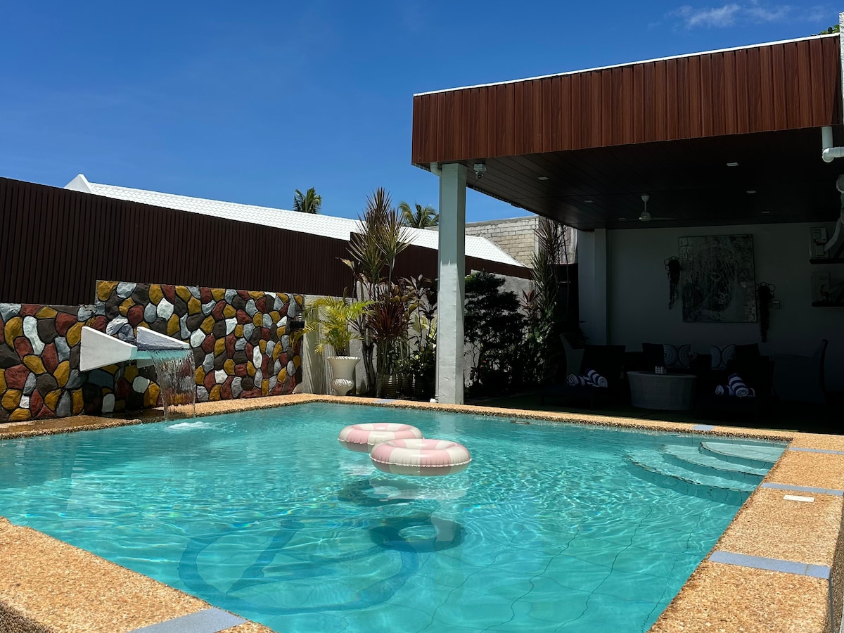 Villa Tawala is a hidden gem in a quiet and lush greenery, just 10 mins walk from busy Alona. Beautifully designed, It offers a 4-br villa, pool house with gym and bar, 3 pools, a bungalow, and 2400 sqm of private garden. Fully serviced, it includes arrival welcome dinner, free daily breakfast and cleaning, van shuttling and concierge services. An Italian chef is available on request. Solar powered with grid backup and drinkable tap water, Villa Tawala promises an eco-friendly tropical escape.