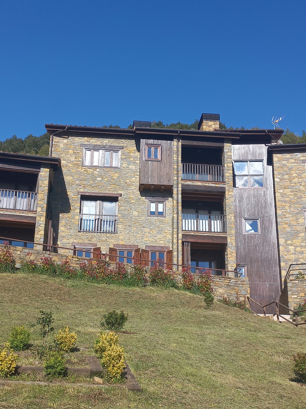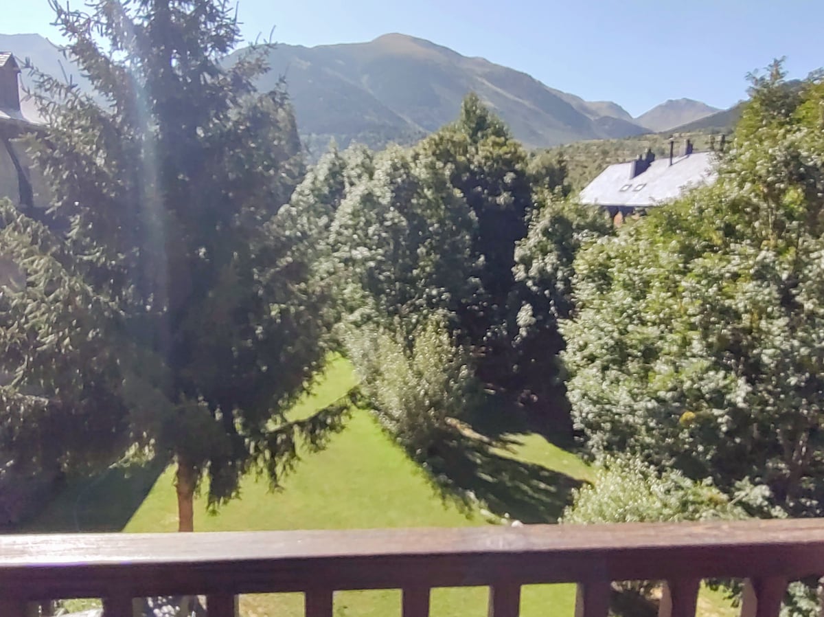 Apartamento situado en el precioso entorno del Pla de l'Ermita. Tiene un balcón con unas espléndidas vistas a las montañas y al jardín comunitario. La paz que se respira en este apartamento es máxima. Muy cercano a las pistas de esquí, al Parc Nacional d'Aigüestortes, a excursiones y paseos de montaña a todos los niveles i al excepcional Románico por la concentración de 8 Iglesias y una Ermita, conservadas a lo largo del tiempo y que están declarades por la Unesco Patrimonio Mundial.
