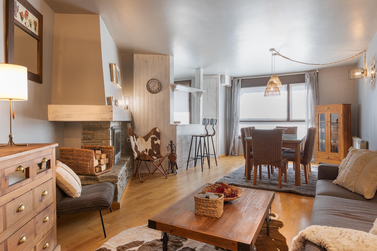 Este espacio único, ideal para parejas y familias, es el escenario perfecto para crear recuerdos inolvidables. Está distribuido en un salón comedor con sofá cama, una amplia habitación de matrimonio y baño completo, todo exterior, con vistas preciosas a la montaña y a 5 minutos de la estación de esquí de Boi-Taull. La chimenea da un ambiente cálido en las noches de invierno. ¡Esperamos que lo disfrutéis!