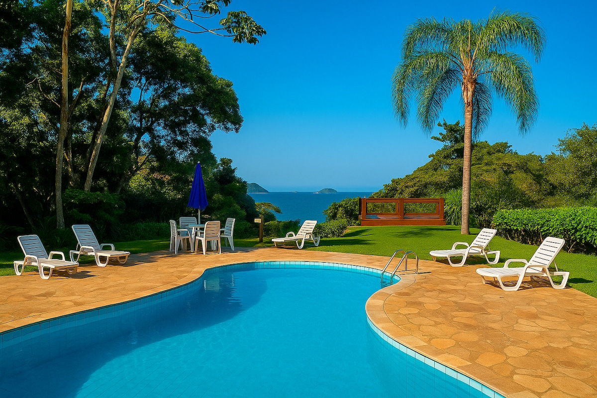 Wonderful chalet with 2 levels and sea view (Toque Toque Grande Island). . Maximum of 4 guests per stay (condominium rule). . Private access to the beach, via trail. . Parking for 1 car. . Gated community. . Swimming pool and game room for condominium use. . Private Jacuzzi inside the chalet. . Close (20min) to Maresias and downtown São Sebastião.