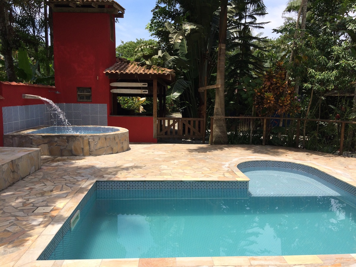 Beautiful house in a gated community in Maresias 6 minutes from the beach Private barbecue Shared pool Bed linens provided (we do NOT provide blankets) 24-hour security 400 MB Wi-Fi 2 bedrooms with double beds, split A/C and fans Living room with sofa bed and 2 single mattresses 42" Smart TV Fully equipped kitchen 2 parking spaces Rate for 4 guests; accommodates up to 6 with an extra fee starting from the 5th guest Check seasonal promotions