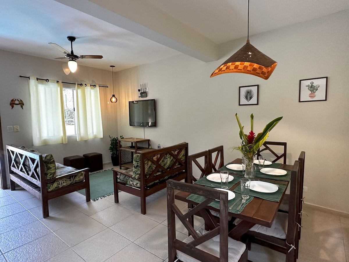 Aconchegante chalé, 700mt da Praia para até 5 PESSOAS. Chalé completo, 5 travesseiros , Geladeira, Filtro de Água, Cafeteira e Fritadeira Elétrica, Microondas, Liquidificador, TV 43”, chuveiro a gás, ventiladores, 5 cadeiras de praia, 2 Guarda Sol e 2 Coolers. Condomínio com RECEPÇÃO 24hs, Piscina, Sala de Jogos, Sala de leitura, 1 VAGA de Estacionamento, Churrasqueira e Lavanderia. Muito verde e aconchegante, com Praias lindas e próximas. Estrutura completa no comércio próximo ao condomínio.