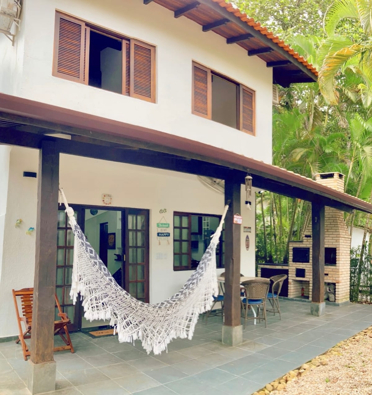 A 100m (4 min a pé) do Canto Mágico da Praia da Baleia, a melhor do litoral norte. Casa no andar superior, acesso por escada leve. 3 quartos com varanda e grade de segurança, 2 banheiros, sala, cozinha americana equipada, varanda com churrasqueira. Ar-condicionado em todos os ambientes, TV OLED 55” com Netflix e Sky, Wi-Fi 200 Mbps. Acomoda até 8 pessoas. Condomínio com piscina aquecida cinematográfica, quadra de tênis e campo de futebol.