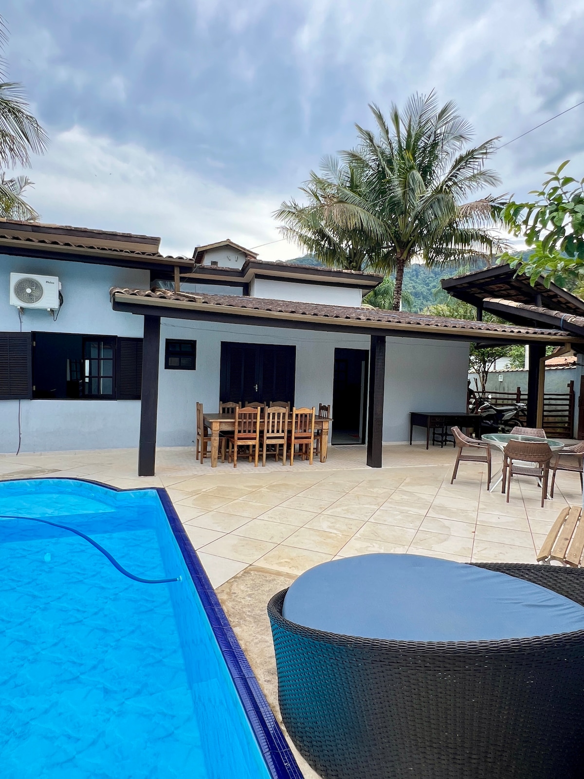 Imagine-se em um lugar onde tudo foi preparado com capricho, para que você tenha uma experiência única: os ares de uma chácara mesclados às belezas do mar e em uma localização de fácil acesso, próxima à rodovia. Esta é a Casa das Mangueiras! Situada entre um bosque de mangueiras e a praia, a casa proporciona um ambiente tranquilo, reservado e com uma piscina aquecida exclusiva para você. Namaste. Aceitamos 1 pet por estadia até 20 kg.