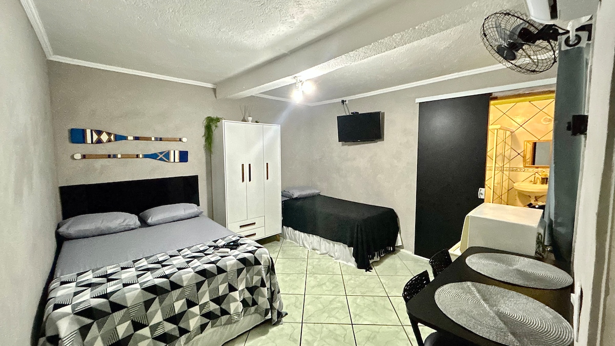 Suíte perfeita para casais que procuram por tranquilidade na praia. 10 minutos do centro da cidade de São Sebastião. O quarto possui uma cama queen e ventilador de teto. A casa possui WIFI e acesso a muitos canais de TV. Area externa compartilhada A cozinha está equipada com pia, armários, microondas, sanduicheira, frigobar e cafeteira. Ja incluso roupa de cama, toalha de rosto e toalha de banho limpas para uso. OBS. Não tem fogão *Infelizmente não aceito animais*