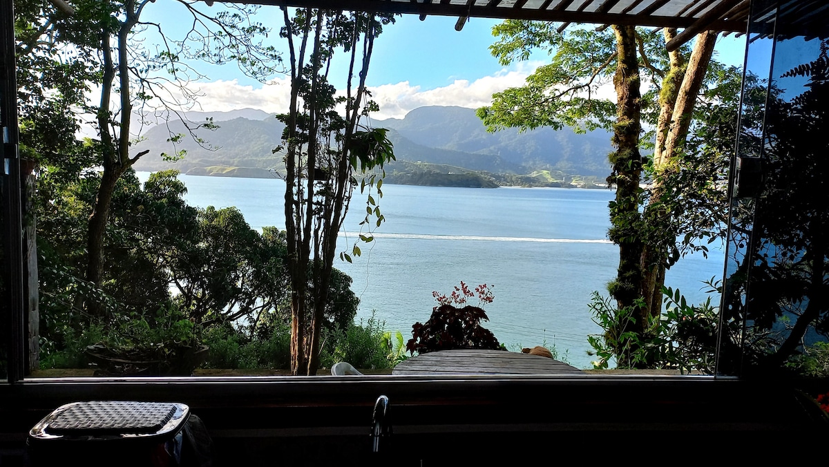 Nossa propriedade é um sítio rodeado de natureza, onde está localizado nossa moradia. Temos vista privilegiada para o mar Acomoda 2 pessoas. Temos ar condicionado, ventilador de teto, cozinha equipada com utensílios, frigobar e cooktop. Estamos a 300 m da praia da Ilha das Cabras. Não permitimos som alto, churrasqueiras Check-in a partir das 17 e check-out até as 13 hs, podendo ser ajustável, conforme a disponibilidade. Temos escadas para subir.
