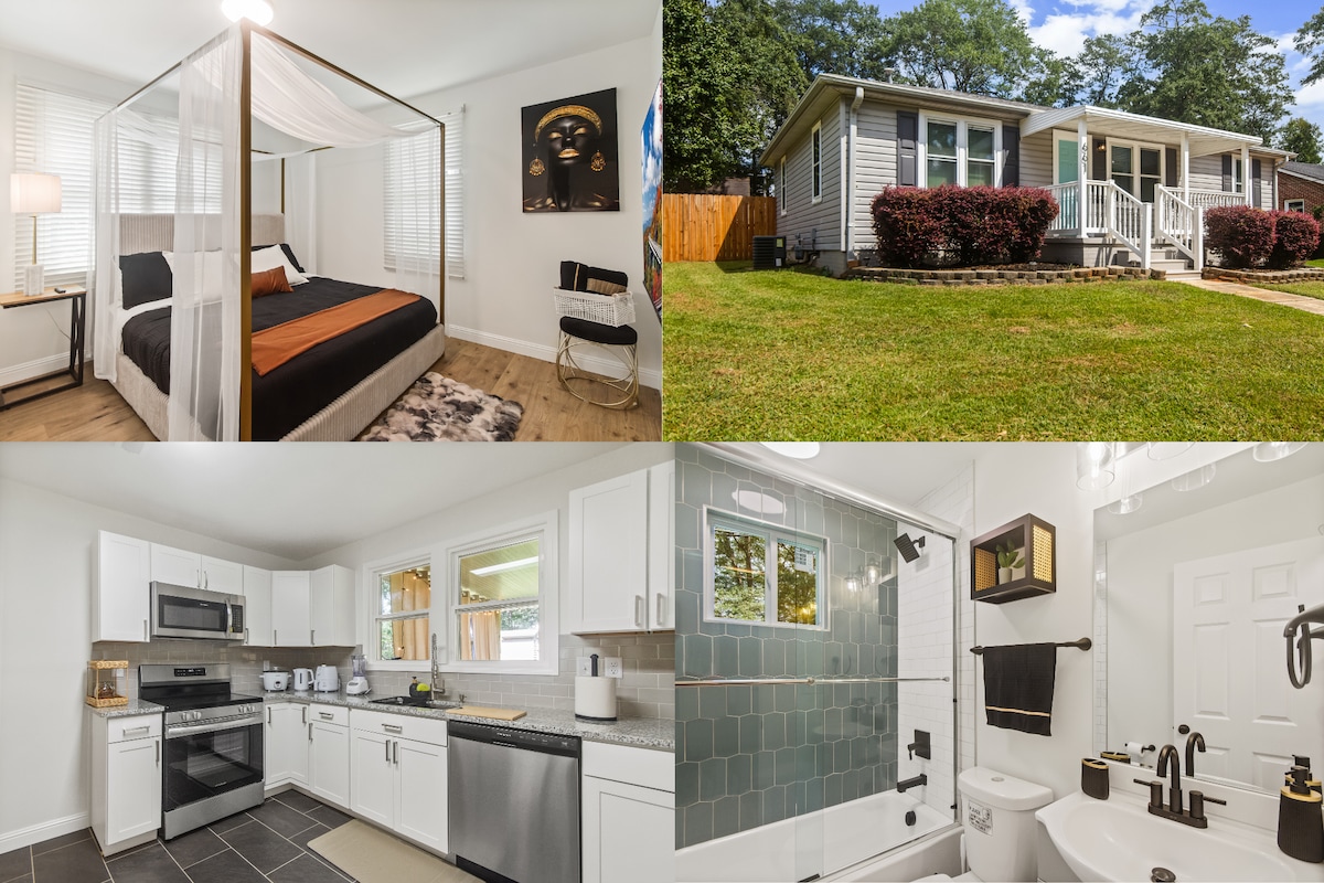 Beautifully renovated 3 beds, 2 baths haven! This gem is a tranquil & stylish retreat, blending modern & cozy charm. Spacious bedrooms, each with plush bedding and storage. Two Bathrooms with soaking tub and a spacious walk-in shower. Cozy living room with a fireplace, TV, and comfy seating. Fully equipped kitchen, Wi-Fi, Private deck and gazebo, fenced yard. Close to the city's best attractions, dining, and entertainment options. This is the perfect home base for your Greenville adventures.