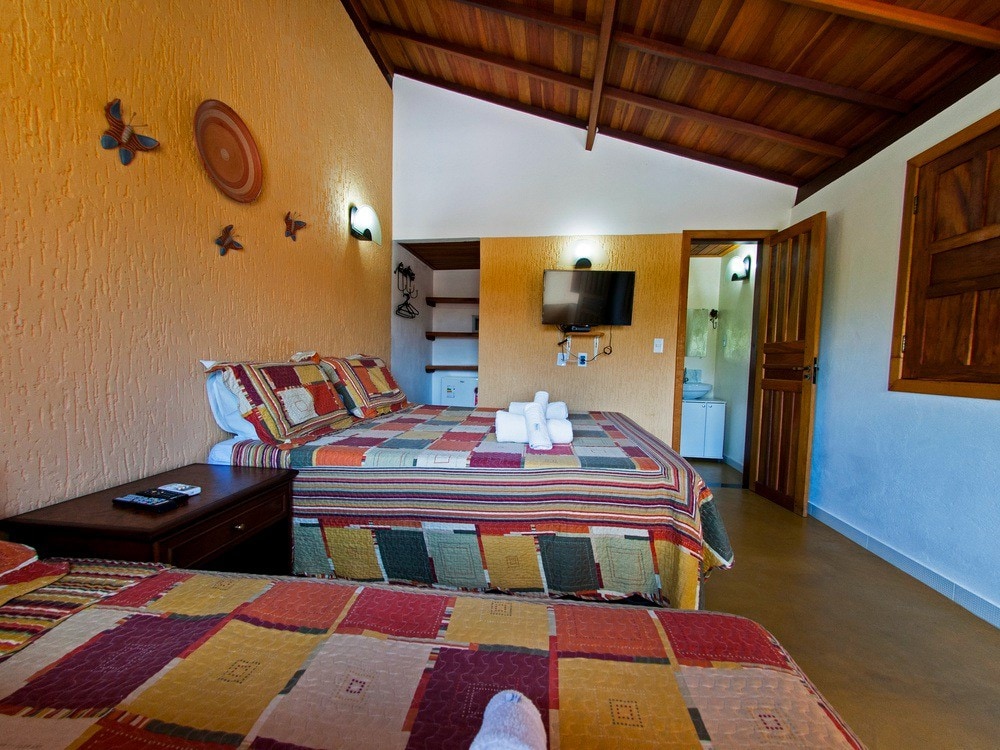 O Bungalow no Canto do Moreré fica a 5m do mar com a maré cheia, em um local de mata atlântica nativa beira mar. A área de 15mil m2 tem 7 habitações, todas bem afastadas, o que garante bastante privacidade. É ideal para casais, famílias e grupos que procuram contato com a natureza em uma experiência única com a fauna e flora local. Acomoda até 6 pessoas e possui quarto e mezanino, um banheiro e cozinha. Dispomos da nossa biblioteca, wifi e pets são bem vindos, desde que avisados antecipadamente