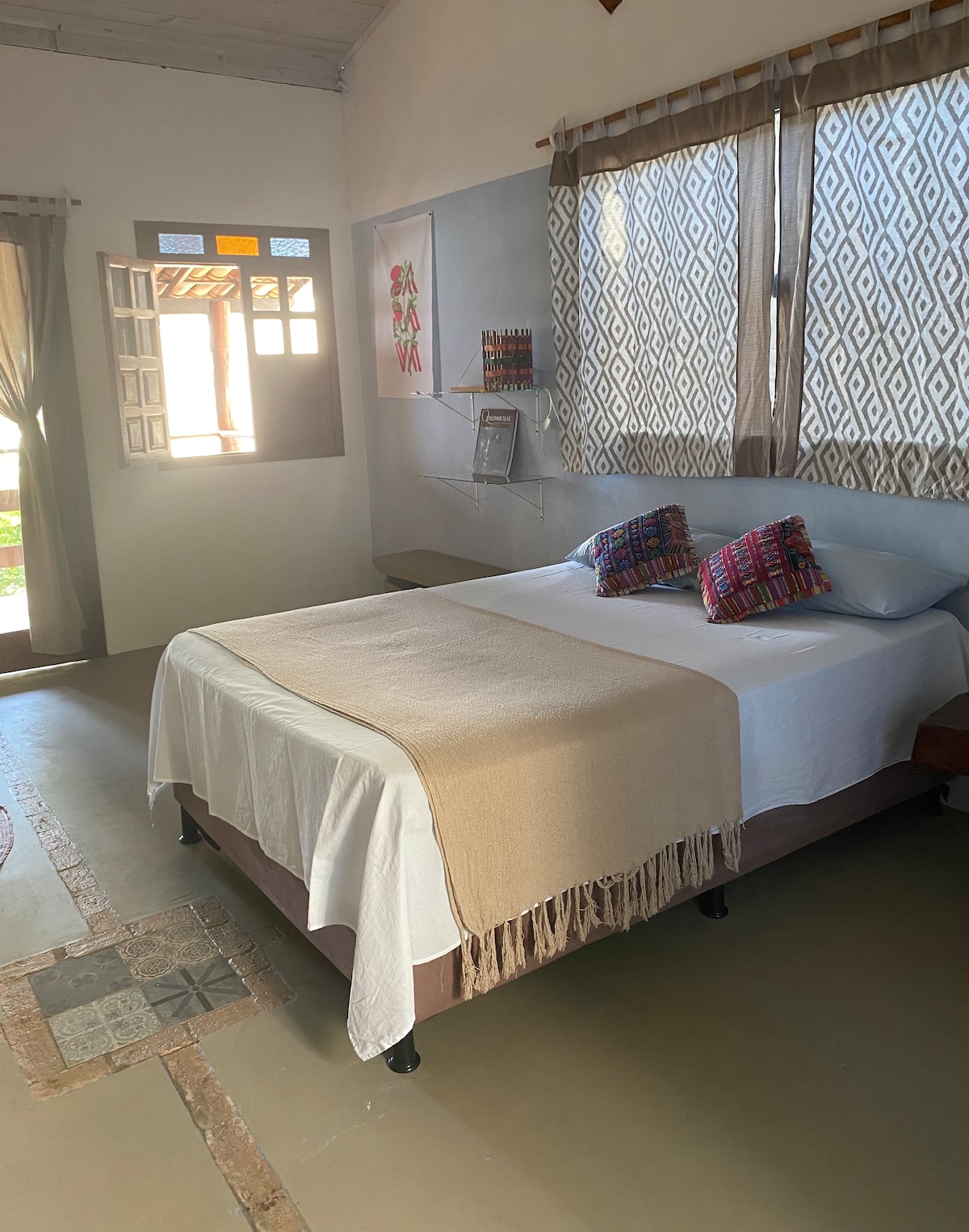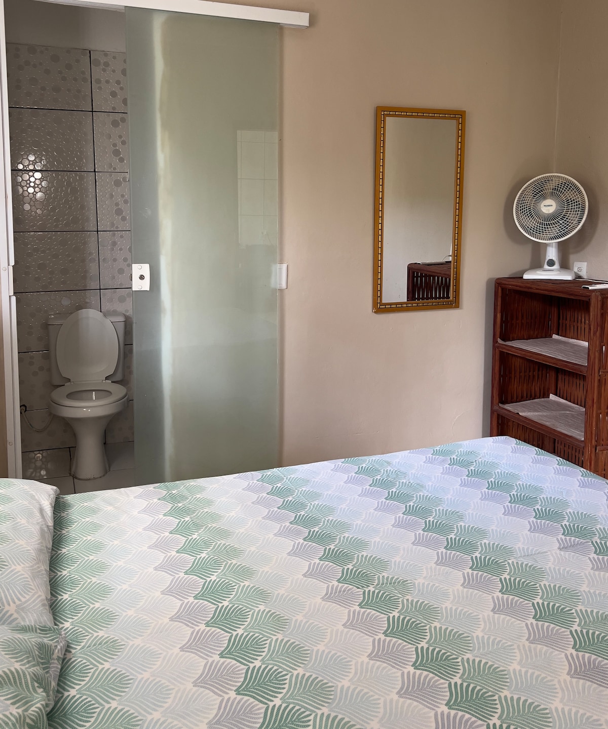 Mantenha a vida simples neste lugar tranquilo e bem-localizado na ilha de Boipeba! Esta casa acolhedora oferece uma área de espaço aberto com cozinha completa, banheiro, cama queen, ar condicionado, varanda privativa e jardim. Estamos localizados em uma rua calma cercada pela natureza. Distância a pé para: -400 metros para a praça principal da aldeia -200 metros até o ponto de quadriciclo que leva a todas as praias -10 min a pé da praia Boca da Barra - Fácil acesso à praia da Cueira