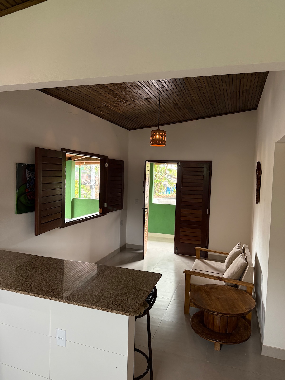 Cozy kitnet, quiet location, close to the village center and all types of shops, 15 min walk from Cueira beach, 10 min from Boca da Barra beach and 5 min from Tractor Point. Equipped kitchen, air conditioning, bathroom with electric shower, wi-fi, balcony and kiosk to enjoy and relax. New shared space available, a laundry room, to make guests' stay easier.
