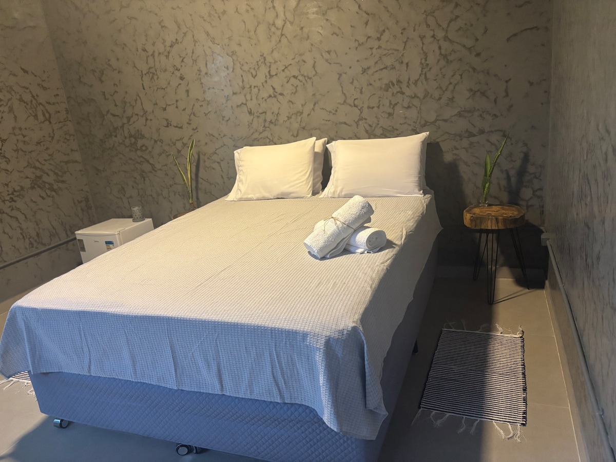 Quartos privativos com cama de casal ,frigobar, wi-fi e chuveiro elétrico,