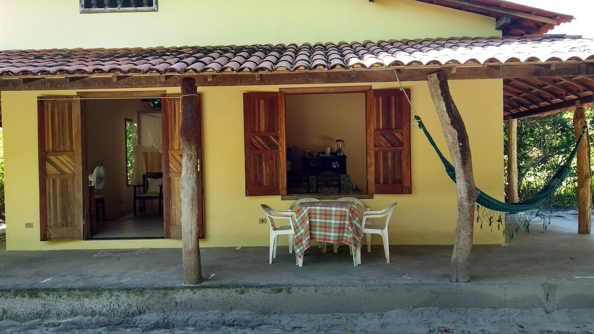 Casinha com mezanino, aconchegante e completa. Um espaço pensado para o seu descanso, conforto e bem-estar. A casa tem 1 quarto com cama de casal e ar-condicionado, mezanino com cama de casal e ar-condicionado, banheiro com chuveiro elétrico e cozinha completa com balcão americano. A varanda é um convite para relaxar: rede, churrasqueira, chuveirão e mesa com ombrelone para aproveitar bons momentos ao ar livre. Aqui, você se sente em casa desde a chegada. Relaxe, desacelere e VIVA Boipeba!