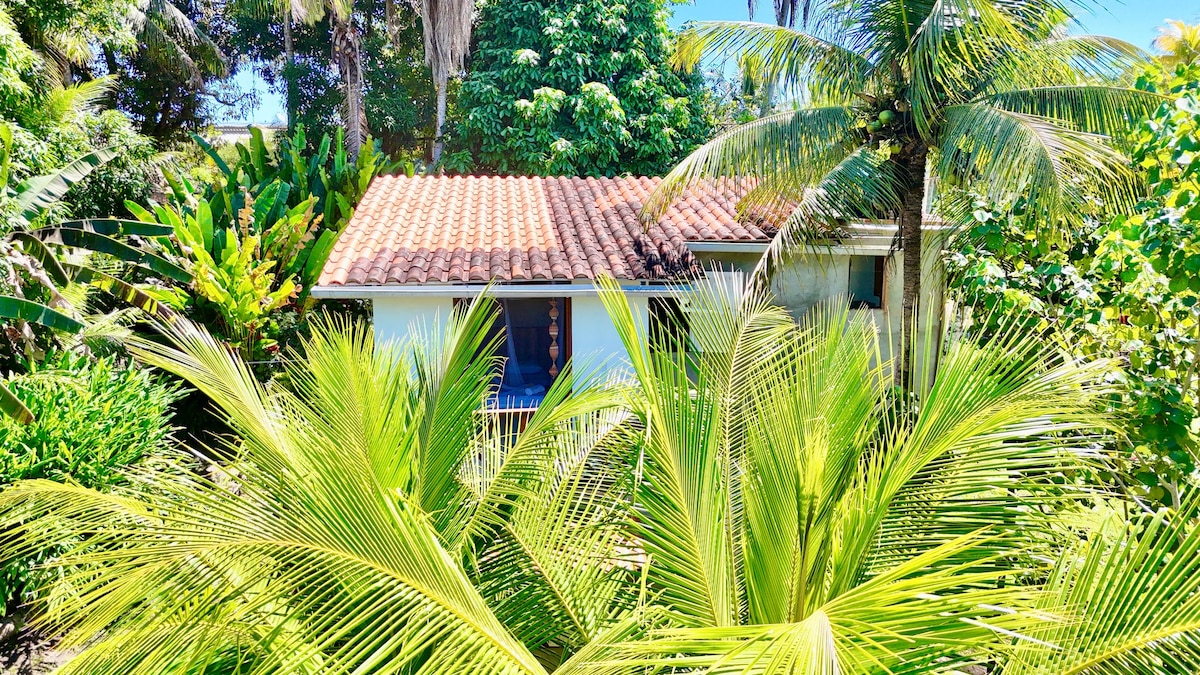 Refúgio na Floresta da ilha de Boipeba. À 800m-Piscinas Naturais do Moreré, 200m-Vila Quilombola Monte Alegre e 3km-Vila de Boipeba. Com a casa feita de barro somos parte da Natureza. O intuito aqui é ser harmônico e se misturar ao espaço. Por isso a casa foi feita com material mais sustentável: madeira, garrafas, vidros e janelas de ônibus e carro. Sanitário seco por câmara compostável, e água que nasce ali e volta pelo círculo de bananeiras. Estar ali pra mim é sentir-se um só com a mãeTerra.