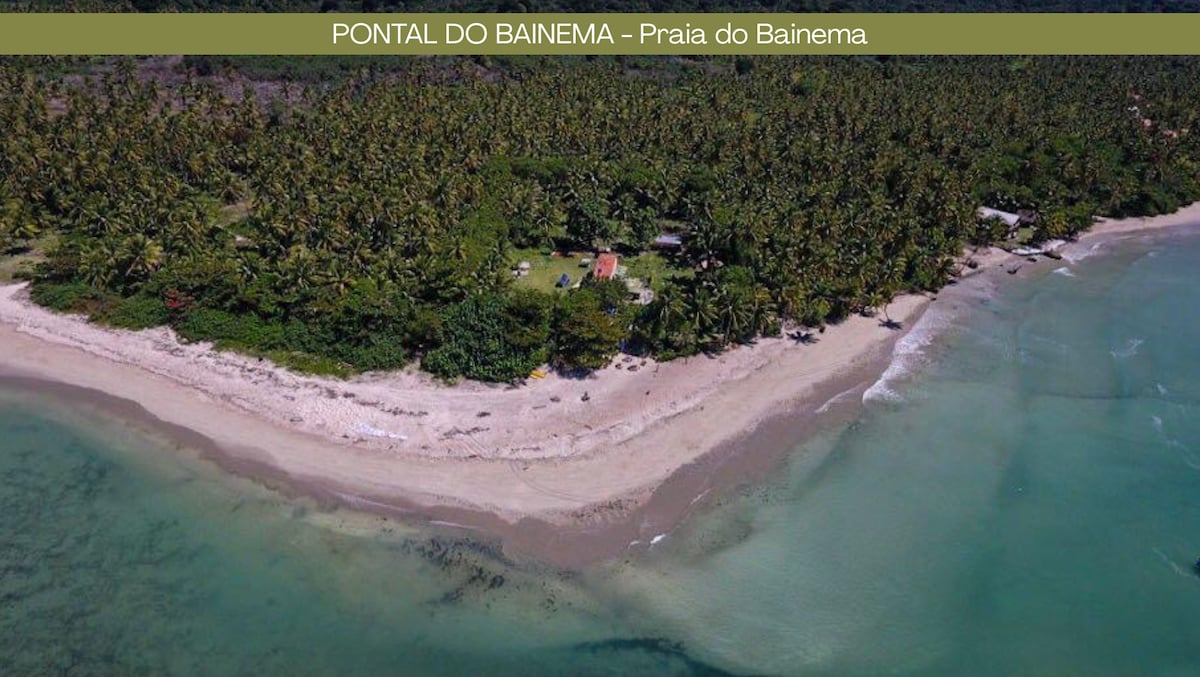 Lugar único, um dos cenários mais preservados e paradisíacos do litoral brasileiro. Localização pé na areia na Praia de Bainema ( Pontal do Bainema ) na charmosa Ilha de Boipeba. Acesso direto à praia. A acomodação é uma suíte privativa, localizada em um dos dois chalés da propriedade. Cada chalé possui duas suítes independentes. Há uma cozinha externa comunitária completa com churrasqueira, dois cooktops, geladeira, armários, mesa e utensílios que podem ser usados na hospedagem.