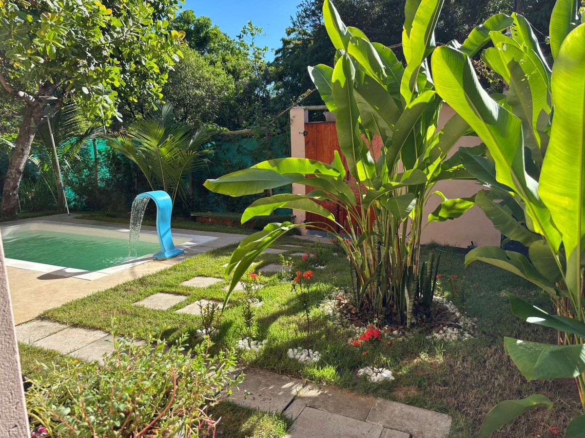 Nosso flat é bem amplo e espaçoso e rodeado pela natureza. Estamos localizados bem no meio da vila de Boipeba, pertinho de tudo . O apto dispõem de uma cama de casal ,uma bi cama , banheiro privativo e temos uma cozinha simples compartilhada no jardim . Temos uma deliciosa piscina com deck para você aproveitar e relaxar. Obs.: A piscina é para uso dos dois flats e de uma casa que esta no mesmo espaço. Esqueça de suas preocupações neste lugar espaçoso e tranquilo. Vem pro flor da ilha 🌸