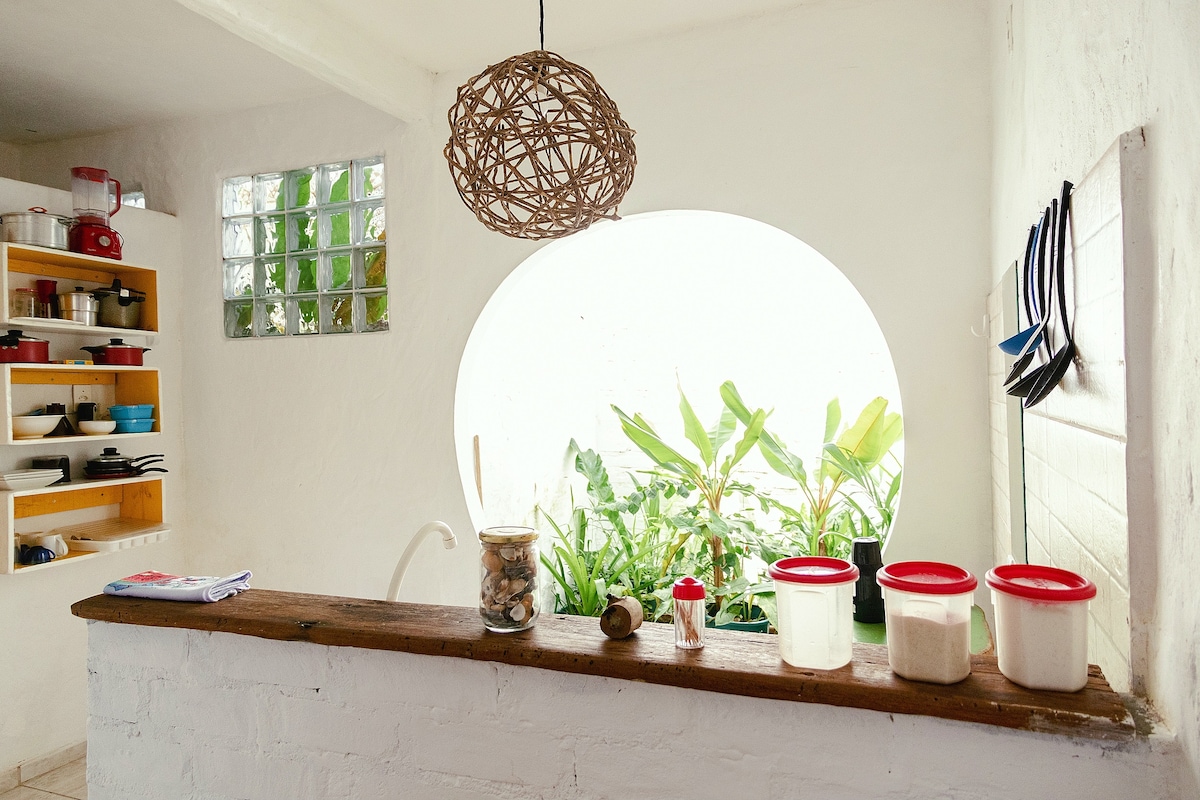 Rústico, moderno e ótima localização. O espaço Lua é inspirado na arquitetura grega, possuí um agradável jardim interno, claridade natural constante e amigável integração dos ambientes. A cozinha é bem equipada com utensílios para elaborar refeições básicas. Também conta com internet wi-fi de ótima qualidade e ventilador no teto. Tudo isso em uma rua florida e localização privilegiada a 5 min da praça central, 8 min até a praia. ☀️🌴