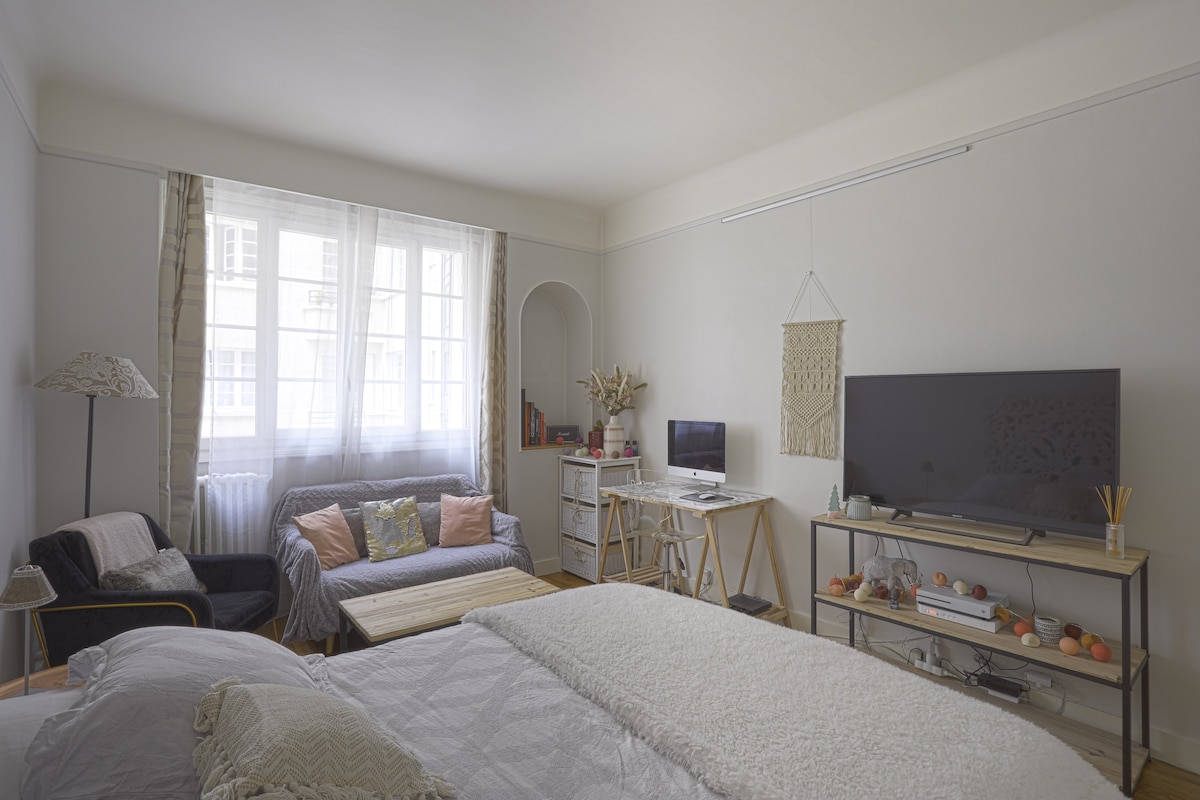 Bienvenue dans ce grand studio refait à neuf avec un balcon dans le 16ème arrondissement de Paris, très fonctionnel et propre. Grand fenêtres cuisine équipée (machine à laver/sèche-linge, lave vaisselle, micro-onde, machine à café Nespresso Vertuo...). Grande TV et wifi très rapide, Lit escamotable très comfortable et haut gamme 140/200. Lit fait à l’arrivée avec des draps en Cotton d’Égypte. Parallèle seine, derrière Radio France et 3mins marche au pont javel Balcon très agréable meublé.