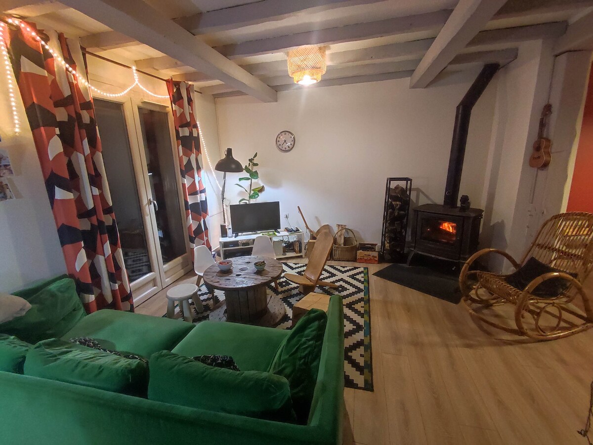 Proche Rouen Petite maison indépendante de 40m2 + mezzanine. Pleine de charme. Cadre cosy, cocooning et intimiste sans vis-à-vis. Elle dispose de 2 espaces extérieurs, terrasses et pergola et vous offre une cuisine aménagée et équipée, un séjour salon avec un poêle à granulé, une grande douche italienne avec un sauna, wc séparé. À l’étage un coin nuit en mezzanine avec un lit en 180x200. Barbecue salon de jardin à disposition Profitez du calme de la campagne tout proche de la ville.