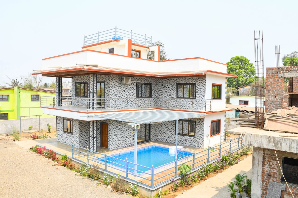Welcome to our peaceful villa in Vasai! Our modern yet cozy retreat offers a spacious living area surrounded by greenery. Take a dip in the refreshing pool or relax on your private balcony. The bedrooms are designed for a tranquil escape with comfy amenities. Conveniently located near Mumbai, our villa is a simple and comfortable getaway. Book your stay for a relaxed experience tailored for your comfort.